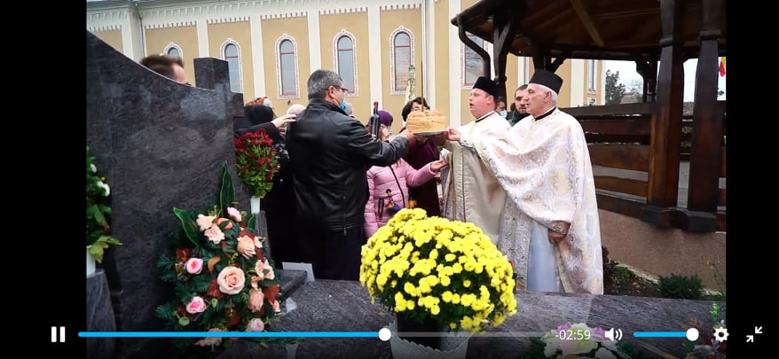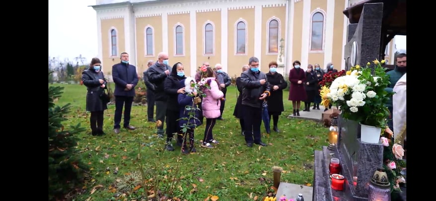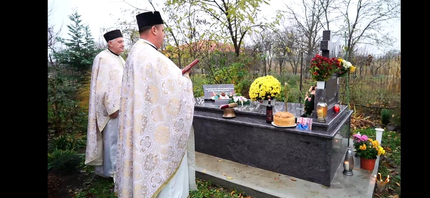 După Sfânta Liturghie, cei prezenți, în frunte cu cei doi preoți, au ieșit în curtea bisericii, la mormântul profesorului Teodor Curpaș, care, de altfel, a și fost sfințit.