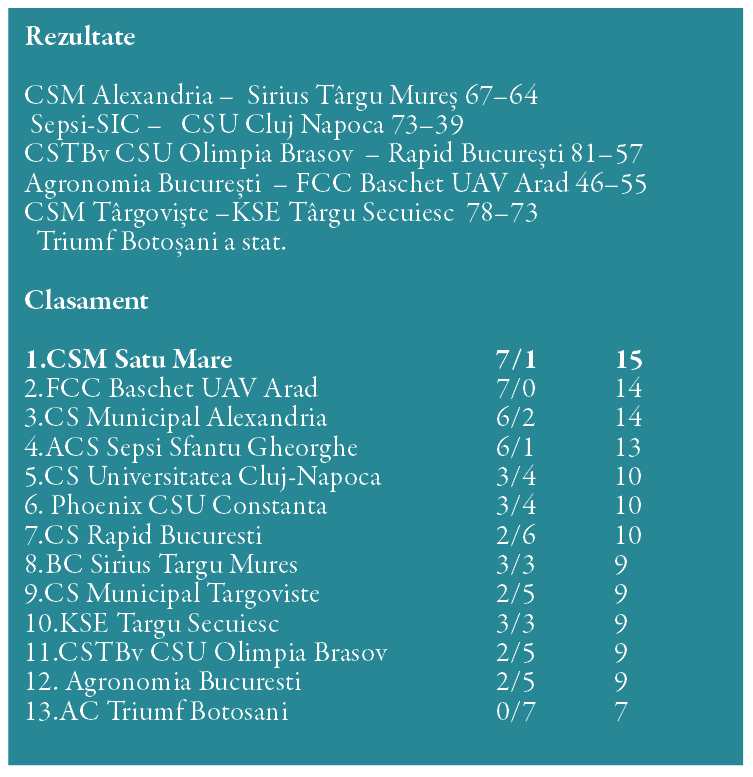 Baschetbalistele de la CSM Satu Mare au trecut rapid peste înfrângerea de la Arad și, sâmbătă au obținut o victorie categorică la Constanța, scor 87-59, în etapa a 8-a a Ligii Naționale.