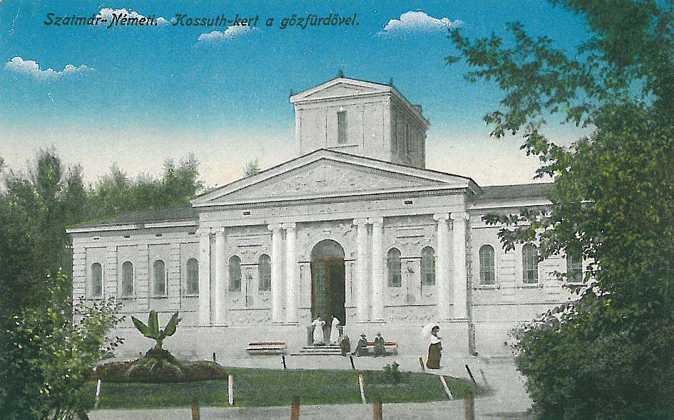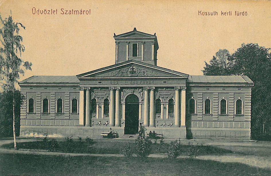 Situată în partea sud‐vestică a parcului Grădina Romei‐Kossuthkert, clădirea băii comunale face parte din amenajarea originară a acesteia, fiind construită în perioada 1900‐1901. Nu se cunoaşte cine a fost arhitectul clădirii, existând însă date despre constructorul ei, Miklós Hirsch, căruia oraşul i‐a încredințat construirea băii comunale în anul 1900.