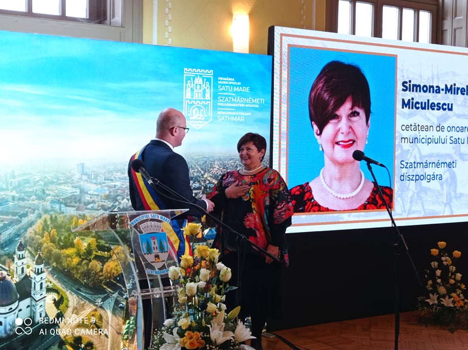 Vă asigur că nu voi fi doar Ambasadorul României ci voi fi în continuare și ambasadorul municipiului Satu Mare”, a declarat Simona Mirela Minculescu după ce a primit distincția.