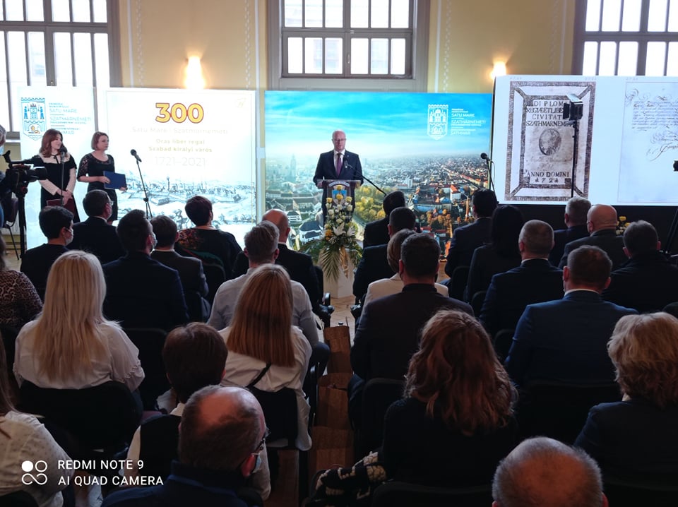 ”În toată istoria sa de secole, Satu Mare s-a clădit pe trecut, cu privirea spre viitor. În cursul istoriei, evoluţia orașului nostru a avut mai multe puncte de cotitură, unul dintre cele mai importante fiind în 1721. Atunci, diploma imperială emisă de Carol al VI-lea a consfințit unirea dintre Sătmar și Mintiu, orașului Satu Mare conferindu-i-se statutul de oraș liber regal. Anul acesta s-au împlinit 300 de ani de la acest moment important, privit de istorici drept unul hotărâtor pentru dezvoltarea orașului, care nu putea să se întâmple fără ca locuitorii acestuia să se unească pentru un scop comun și pentru a-și decide singuri viitorul. Noi, locuitorii Sătmarului știm din istorie că momentele dificile pot fi depășite numai prin unirea forțelor și colaborarea cetățenilor și, nu în ultimul rând, prin încredere în viitor. Sunt onorat să fiu primarul orașului acum când se împlinesc 300 de ani de la obținerea statutului de oraș liber regal”, a spus edilul șef.