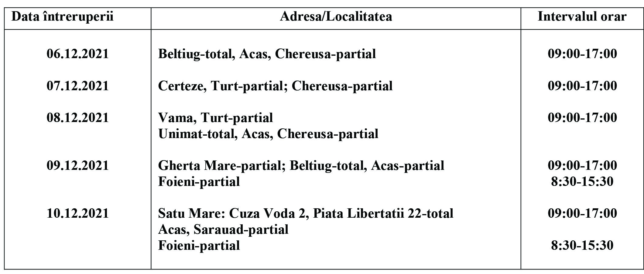 Distribuție Energie Electrică Romania - Satu Mare anunţă întreruperea alimentării cu energie electrică: