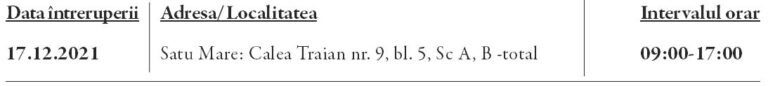 Distribuție Energie Electrică Romania – Satu Mare anunţă întreruperea alimentării cu energie electrică: