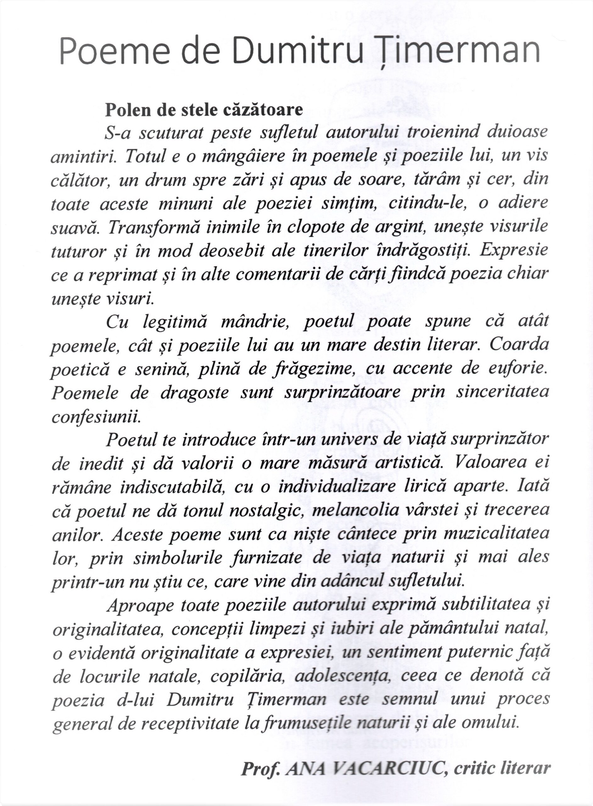 Am în față o carte care mi se desfășoară ca o oglindă. Una magică, în care mă văd așa cum DUMNEZEU mă vrea să fiu … mai bun, mai curat … mai copil ... o oglindă, în care pot să fug pentru o clipă de eternitate, în sufletul de copil al UNIVERSULUI PRIMORDIAL … creat de EL, pentru mine ... ”eu”, mica LUI Comoară … ascunsă de Meșterul Suprem în Ulciorul de lut al existenței mele … în VIAȚĂ!