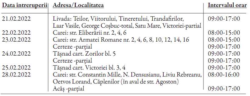 Distribuție Energie Electrică Romania - Satu Mare anunţă întreruperea alimentării cu energie electrică:
