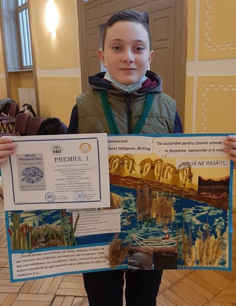 Un tânăr eco-voluntar de la Școala Gimnazială ”Viorel Sălăgean” din localitatea Beltiug a obținut premiul I la concursul ”Cel mai reușit afiș” acțiune dedicată ”Zilei Mondiale a Zonelor Umede”.