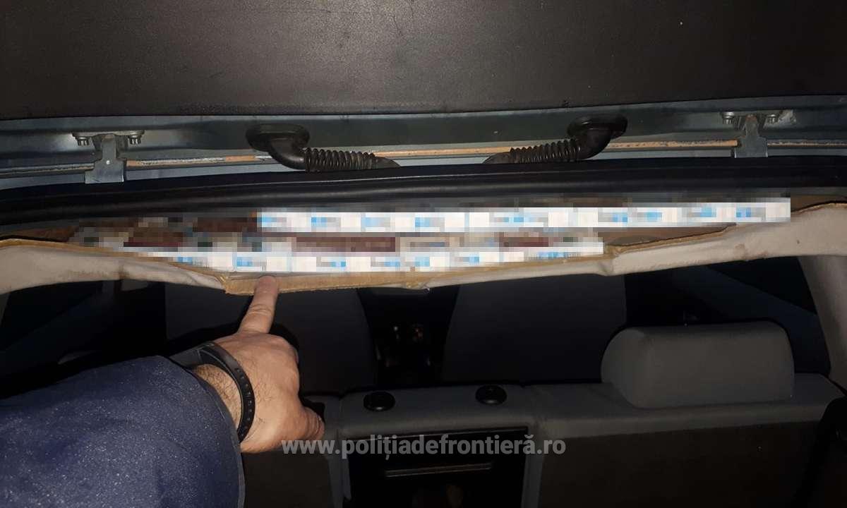 Drept urmare, a fost descoperită ascunsă, în vederea sustragerii de la controlul vamal, în plafoniera şi în bara din spate a autoturismului, cantitatea de 760 pachete de țigări, de proveniență ucraineană.