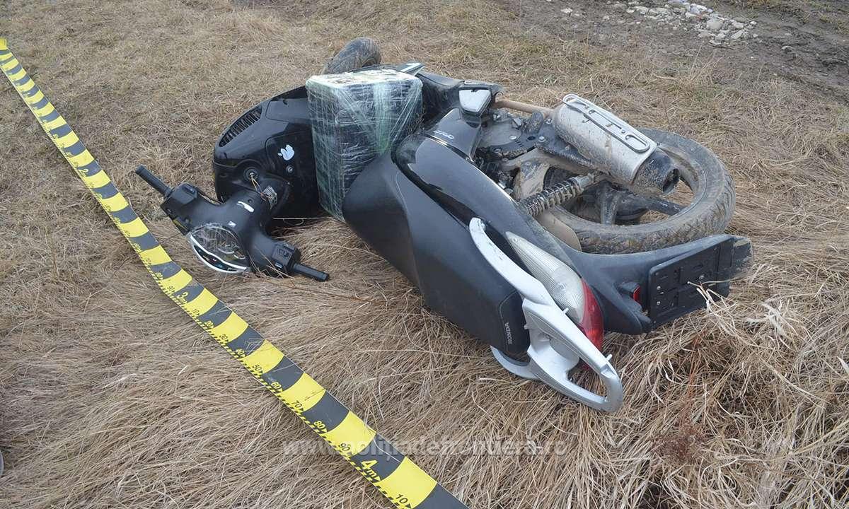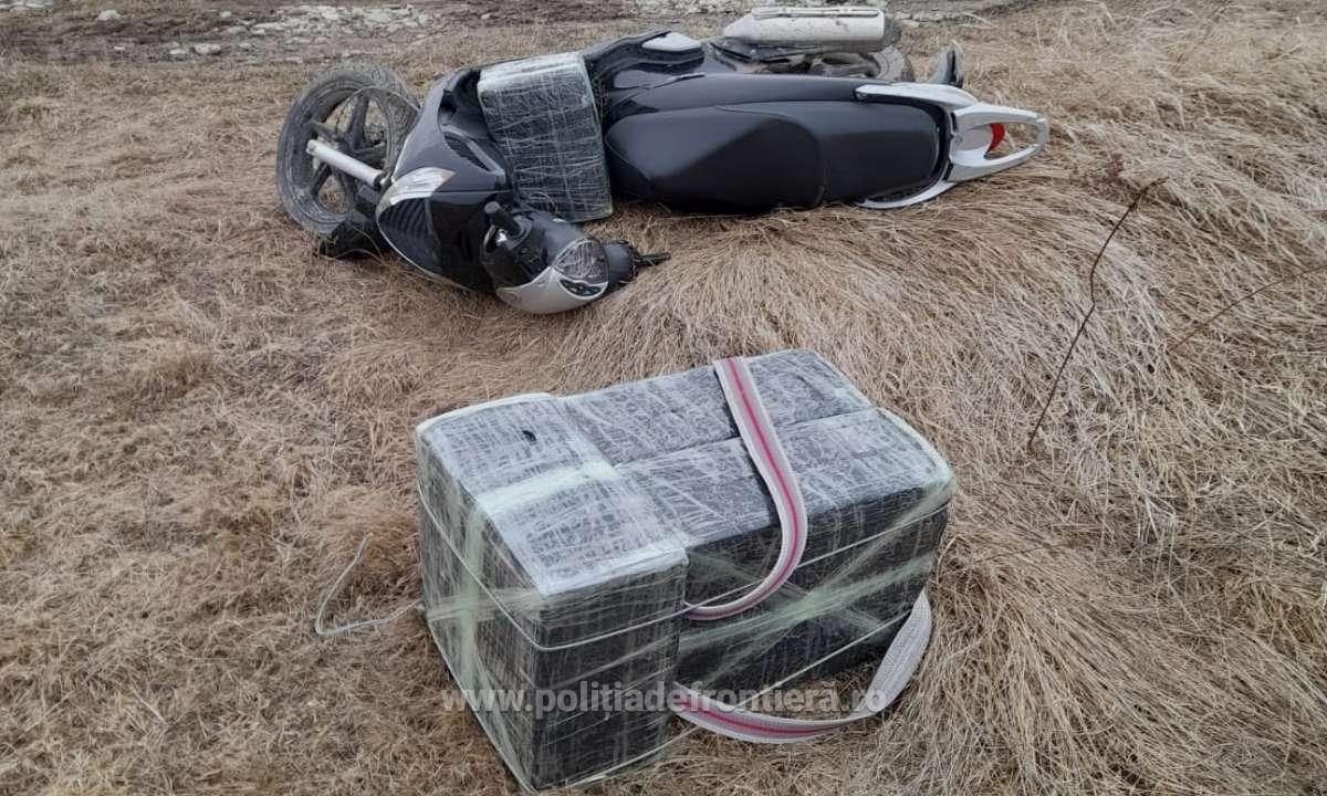 Astfel, în jurul orei 13.00, un echipaj al poliției de frontieră din cadrul sectorului a observat o persoană care transporta cu un moped mai multe colete voluminoase, dinspre frontieră spre localitatea Vicovu de Sus. Imediat, colegii noștri au acționat pentru reținerea acesteia, însă la vederea echipajului a abandonat mopedul şi a încercat să fugă în localitate.