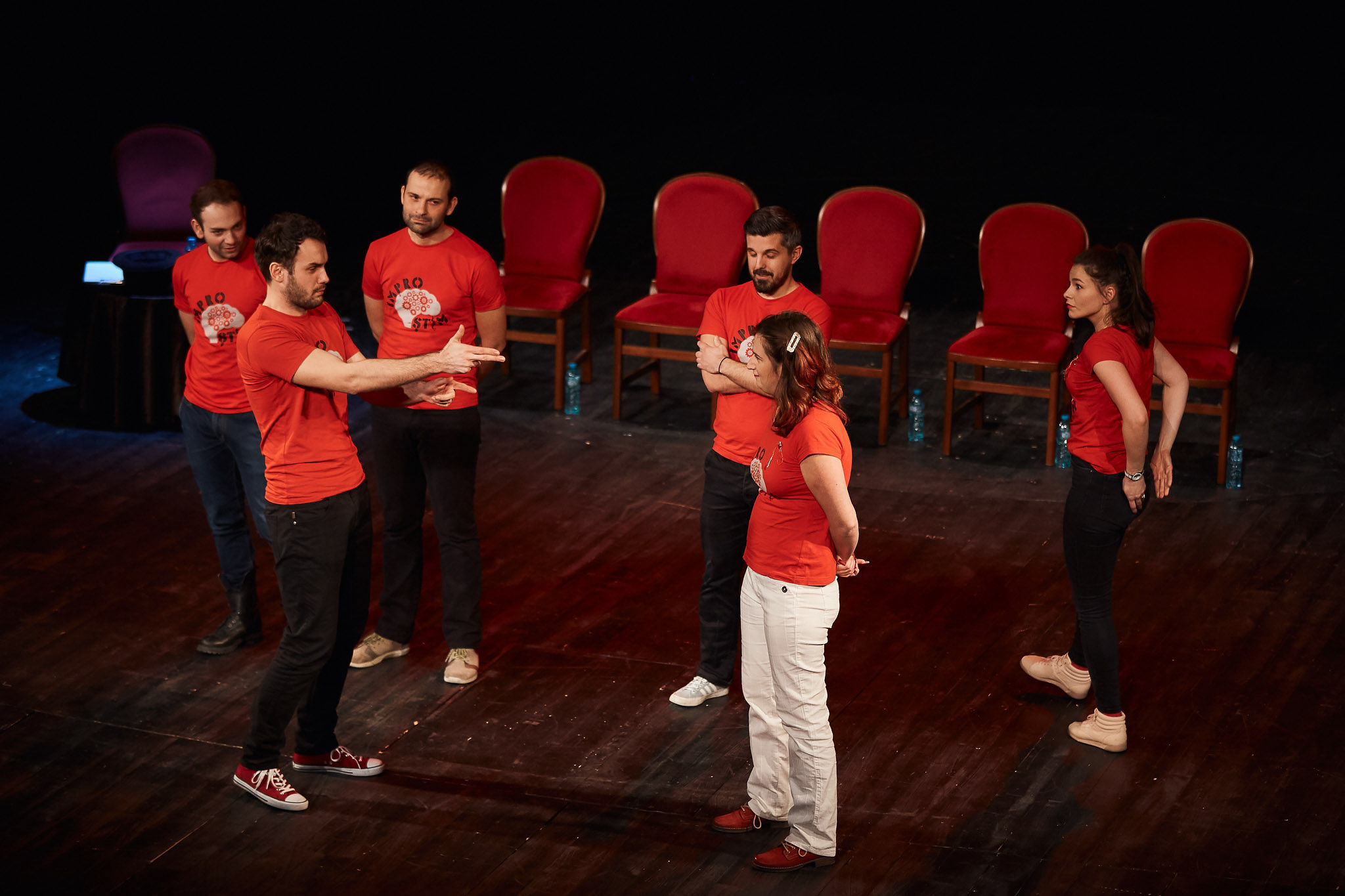 Improvizatori: Ioana Cheregi, Alexandra Odoroagă, Vlad Mureșan, Andrei Stan, Sergiu Tăbăcaru, Andrei Gîjulete.Informații și bilete: Agenția teatrală, str. Horea nr. 6, telefon: 0261712106|0786538580.