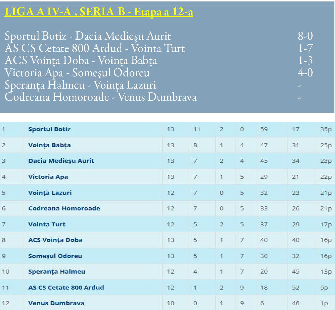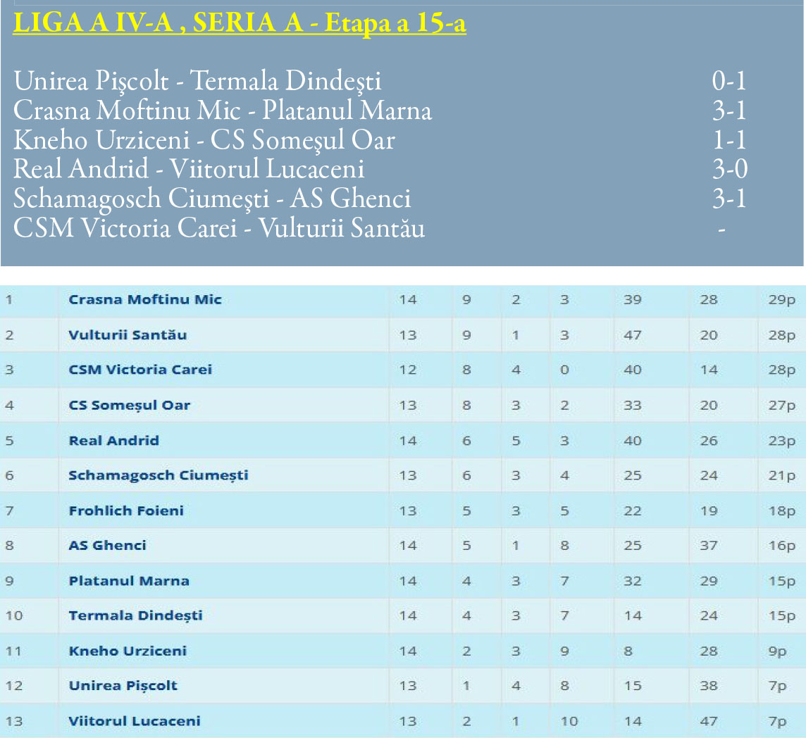 Liga a 4-a Rezultatele înregistrate în acest weekend în “judeţ”