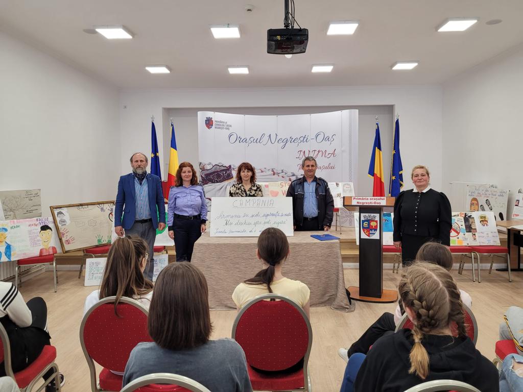 Miercuri, 11 mai , Primăria orașului Negrești Oaș a fost gazda unui eveniment desfășurat de către Școala Gimnazială Nr. 1 Negrești Oaș în colaborare cu polițiști din cadrul Poliției Negrești Oaș și ai Compartimentului de Analiza și Prevenirea Criminalității din cadrul Inspectoratului de Poliție Județean Satu Mare, vizând prevenirea și combaterea violenței în mediul școlar.