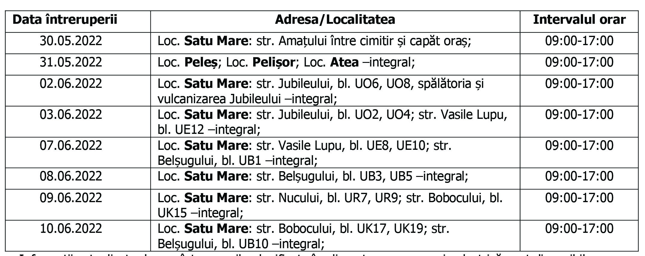 Ne cerem scuze pentru neplăcerile cauzate de aceste întreruperi, care sunt însă necesare pentru asigurarea unei bune funcţionări a instalaţiilor.