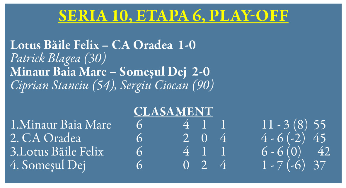 Se cunosc astfel cele două retrogradate, Luceafărul Oradea fiind condamnată parcă din start, iar Progresul Șomcuta va retrograda după o prestație dezamăgitoare în play-out.