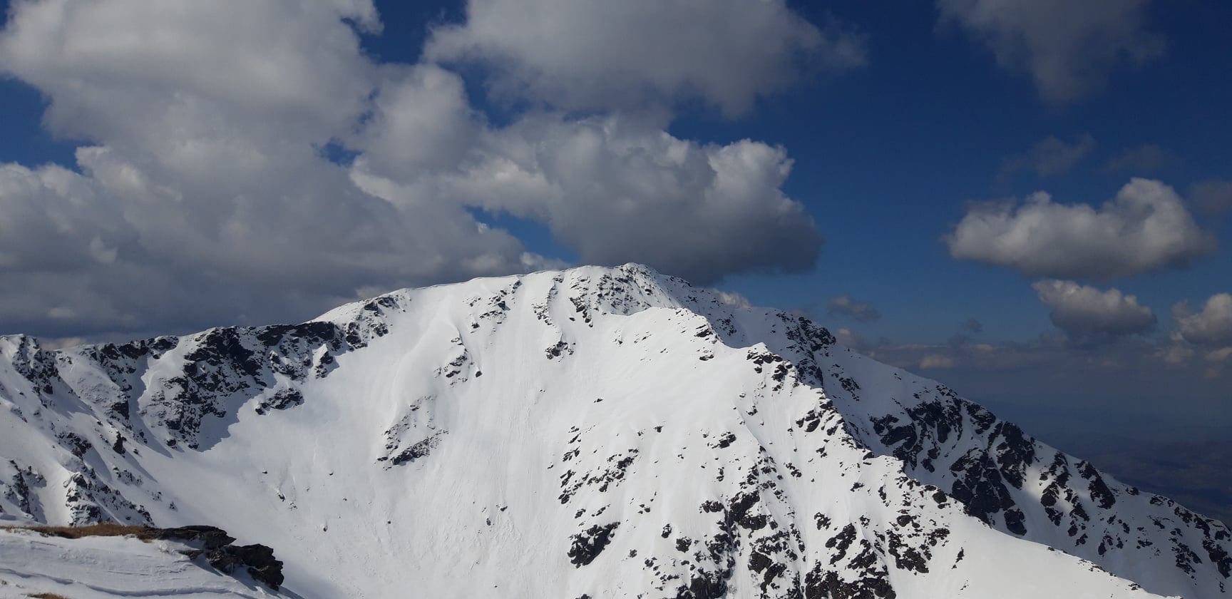 -de pe vârful Pietrele Albe, după cca 30-45 min se atinge într-o ușoară urcare, fără dificultăți tehnice, vârful Grohotu. De aici traseul urmează o linie de creastă spectaculoasă, de regulă un mixt de stâncă și zone înzăpezite, cu multe cornișe! Se recomandă legarea în coardă a partenerilor și abordarea cu atenție a acestui sector de cca 150 m