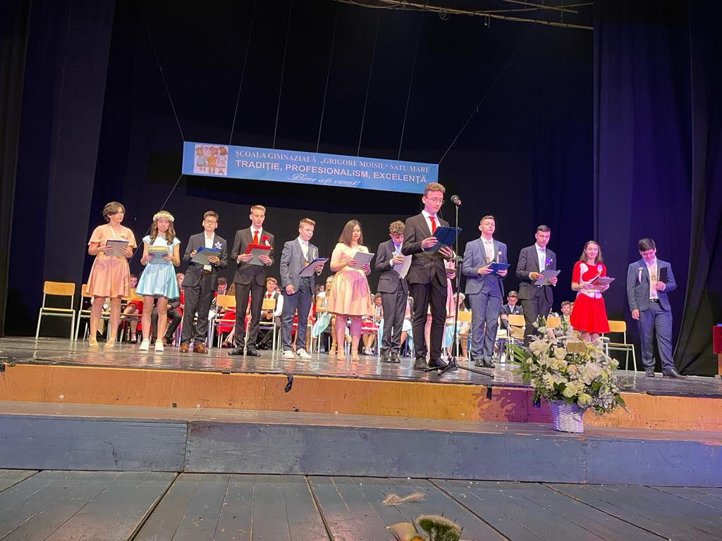 Joi, de la ora 11, la Casa de cultura, in atmosferă de mare sărbătoare, a avut loc festivitatea de absolvire a claselor a VIII-a de la Școala Gimnazială "Grigore Moisil". În cadrul evenimentului a participat și Anișoara Boitor, inspector școlar general, Satu Mare.