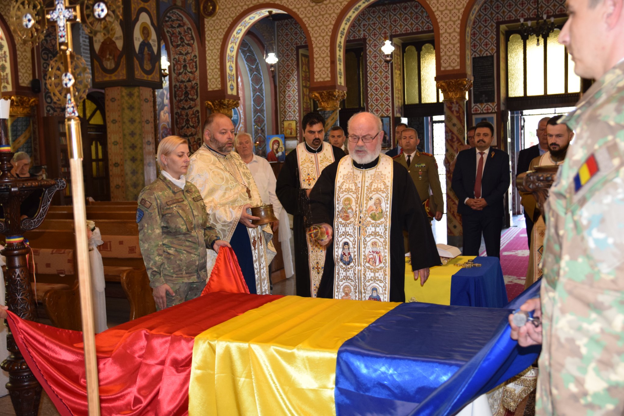 Ceremonial militar dedicat Drapelului Național Înainte de a fi arborat, Drapelul Național a fost sfințiti în cadrul unei slujbe la Catedrala ortodoxă „Adormirea Maicii Domnului” aceasta fiind urmată de ceremonialul militar, alocuțiuni , primirea și înălțarea Drapelului României pe catarg.