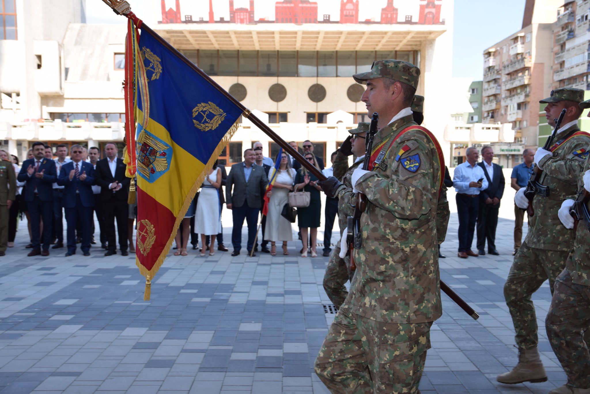 ”În această zi de sărbătoare trebuie să ne amintim că cei ce și-au sacrificat viața pentru apărarea drapelului național au fost ostașii români. De aceea militarii prezenți în această zi ne-ar putea spune cel mai bine ce înseamnă drapelul , nu doar drapelul din cărțile de istorie, ci drapelul pentru care s-a luptat, drapelul ca simbol al onoarei, vitejiei și gloriei militare.