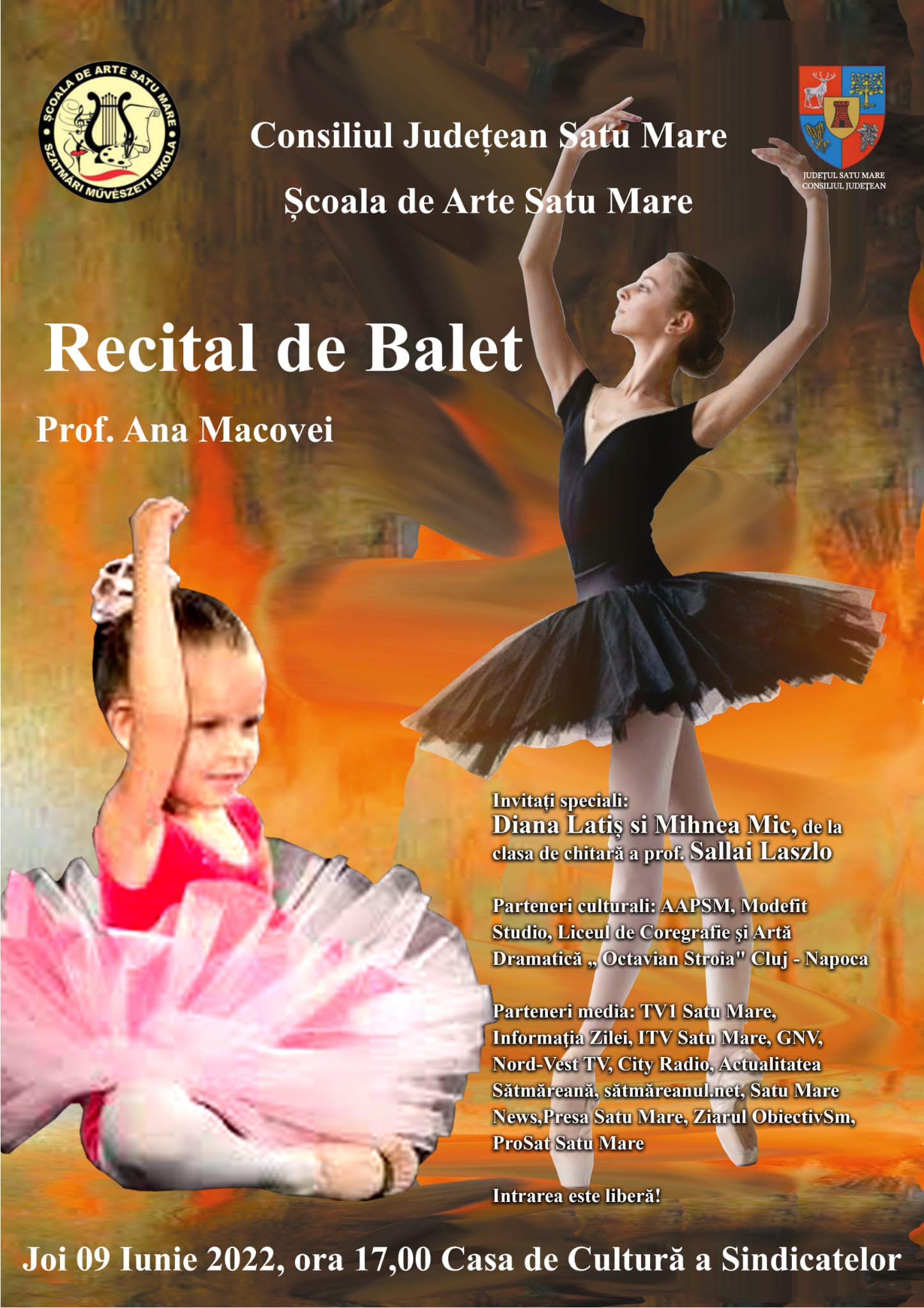 - Joi, 9 iunie 2022, ora 17.00, la Casa de cultură a Sindicatelor din Satu Mare - Spectacolul grupelor clasei de balet, prof. coordonator Ana Macovei;