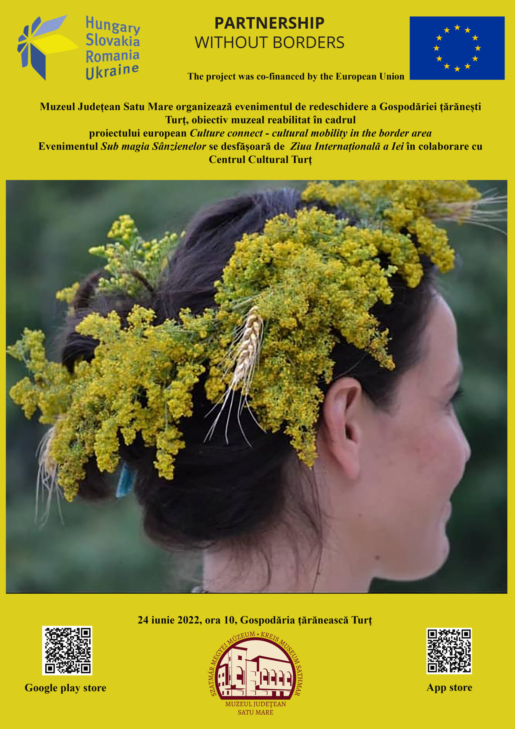 Muzeul Județean Satu Mare în colaborare cu Centrul Cultural Turț organizează cu ocazia ”Zilei Internaționale a Iei” un eveniment ce va marca reincluderea în circuitul de vizitare a Gospodăriei țărănești Turț. Sub magia și protecția Sânzienelor ne dorim să se desfășoare toate activitățile ce vor fi organizate la Turț. Cu această ocazie sub îndrumarea „mătușilor din Turț”, copiii și toți participanții vor învăța să împletească cununi de Sânziene. Gospodăria Turț a fost reabilitată în cadrul proiectului european Culture connect-cultural mobility in the border area - HUSKROUA.