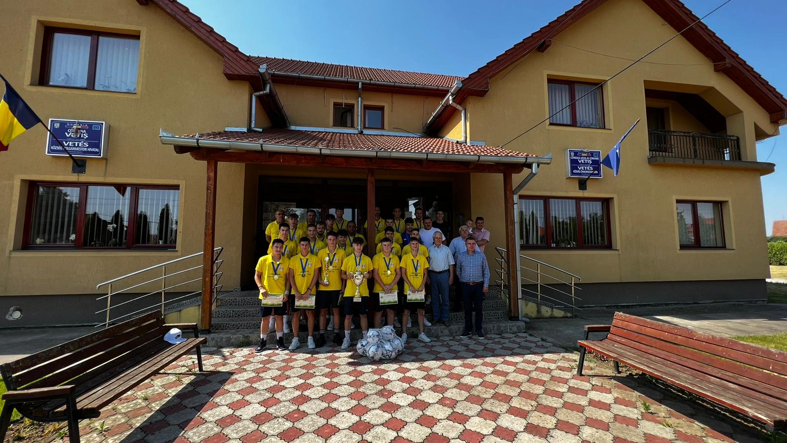 Blăjean CristianPerformanța deosebită reușită de Viitorul Vetiș s-a lăsat cu premiere, vineri, la Primăria Vetiş! Echipa antrenată de Cristi Popa a câștigat finala Campionatului Național de juniori A1 și a devenit, astfel, campioana României la acest nivel, iar primarul comunei, Iuliu Ilyes, împreună cu viceprimarul Daniel Codrea şi preşedintele AJF-ului sătmărean Ştefan Szilagyi au organizat o festivitate deosebită la primăria Vetis!