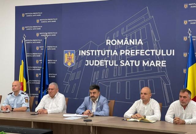 Prefectul Radu Roca, subprefecții Altfatter Tamás și Romeo Pop, directorul Cancelariei Radu Iancu, alături de toți membrii Comitetului Județean pentru Situații de Urgență Satu Mare au participat la videoconferința convocată de premierul Nicolae-Ionel Ciucă pe tema măsurilor de intervenție pentru combaterea efectelor caniculei.