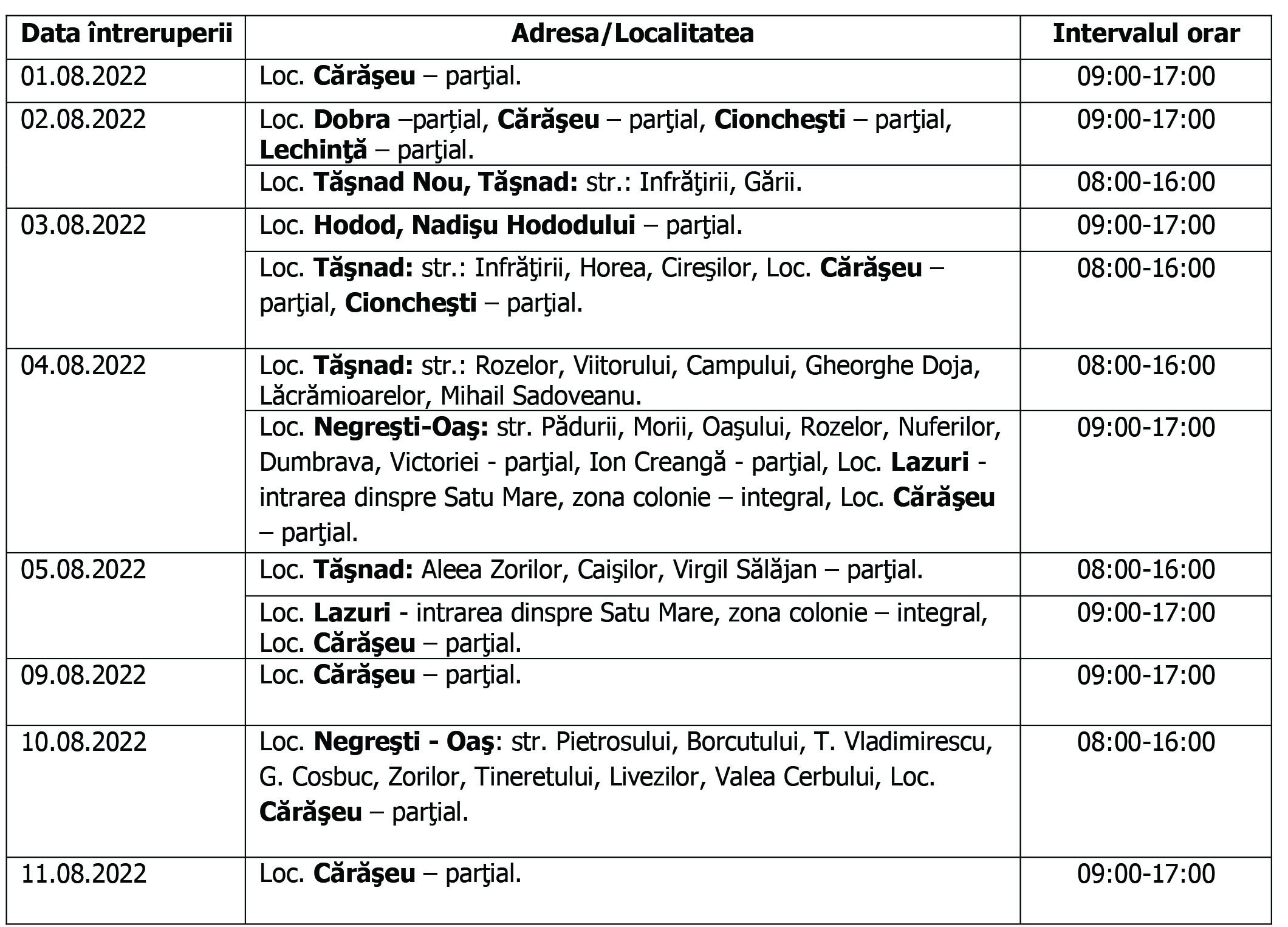 Ne cerem scuze pentru neplăcerile cauzate de aceste întreruperi, care sunt însă necesare pentru asigurarea unei bune funcţionări a instalaţiilor.