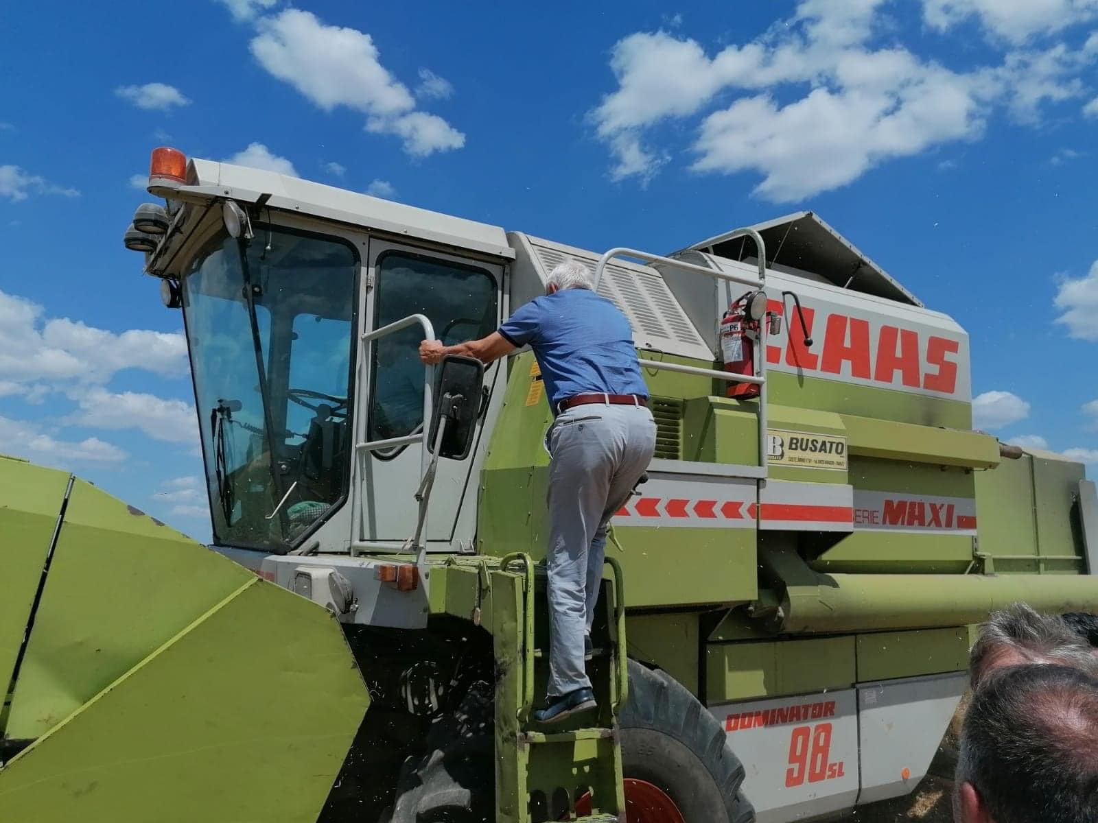 Apoi, a luat o mașină de teren și pe un drum agricol a ajuns la un lan de grîi aflat în plin provces de recoltare. Ministrul Daea s-a urcat pe una dintre combinele aflate în lan, a stat de vorbă cu tractoristul, dar și cu ceilalți femrieri aflați în acel moment în zonă.