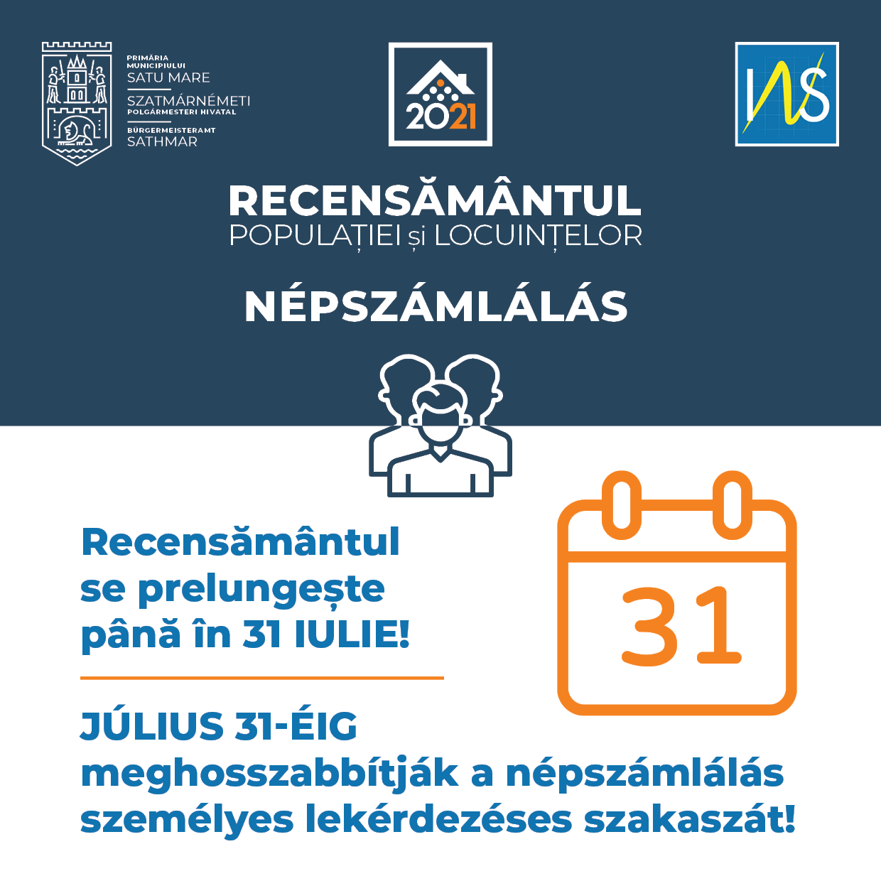 Stimați sătmăreni, vă reamintim faptul că vă puteți adresa pentru recenzare și la cele două puncte amenajate în incinta centrului comercial Shopping City Satu Mare, program 11.00-18.00. Perioada de recenzare s-a prelungit până în 31 iulie.