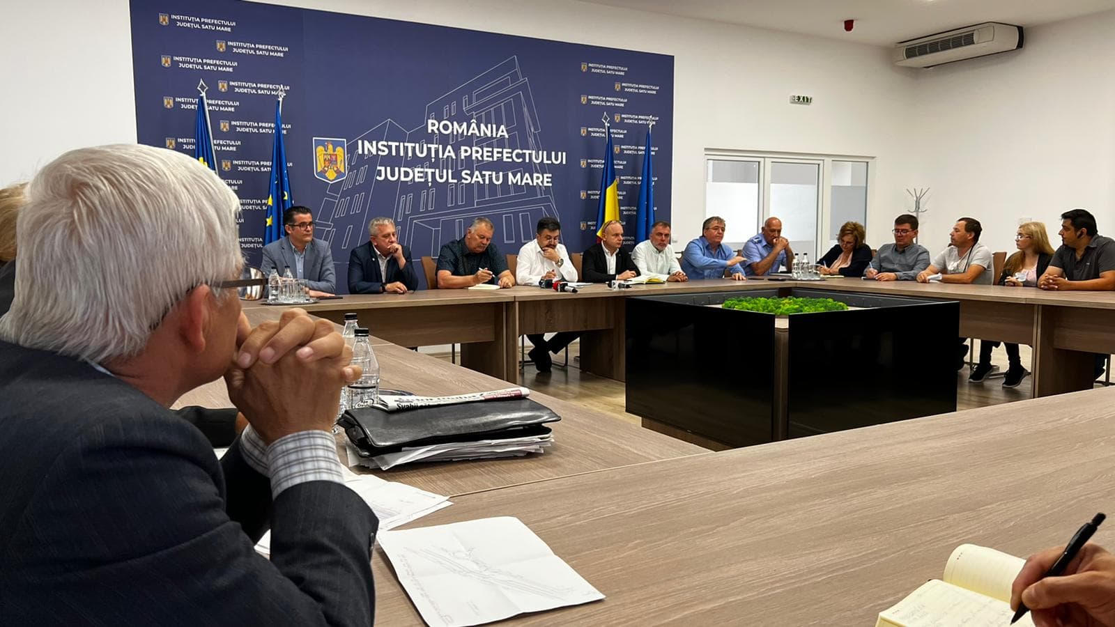 La întâlnirea de luni de la Prefectură au mai fost prezenți, pe lângă prefectul Radu Roca, și reprezentantul CNAIR de la Satu Mare, dar și șeful Poliției Municipale Satu Mare, Catălin Dănciuți.