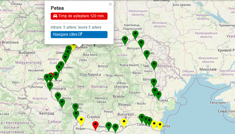 La Petea se lucrează pe 5 artere de control, dar sunt foarte multe autovehicule în așteptare pentru a intra în țară. Astfel că, oficial, pe aplicatia Trafic Online, se arată cî timpul de așteptare pe sensul de intrare în țară este de 120 de minute, dar în realitate este ceva mai mare.