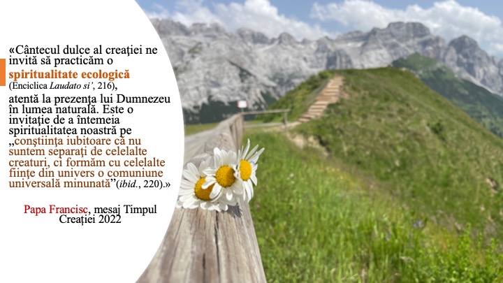 Sfântul Părinte ne îndeamnă în mesajul din acest an ca ”Timp al Creaţiei”, să reluăm a ne ruga în marea catedrală a Creaţiei, bucurându-ne de „grandiosul cor cosmic” al nenumăratelor creaturi care cântă lui Dumnezeu laudele.