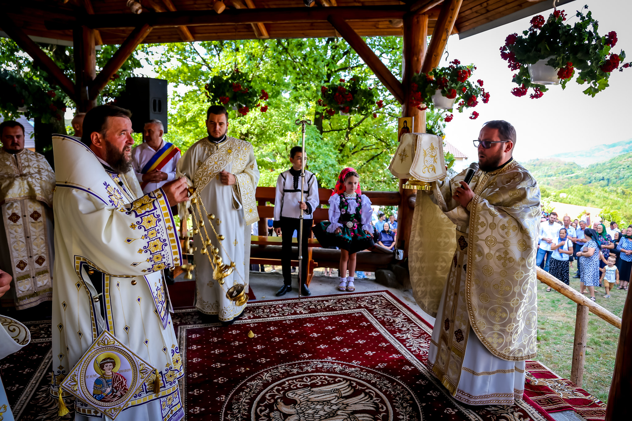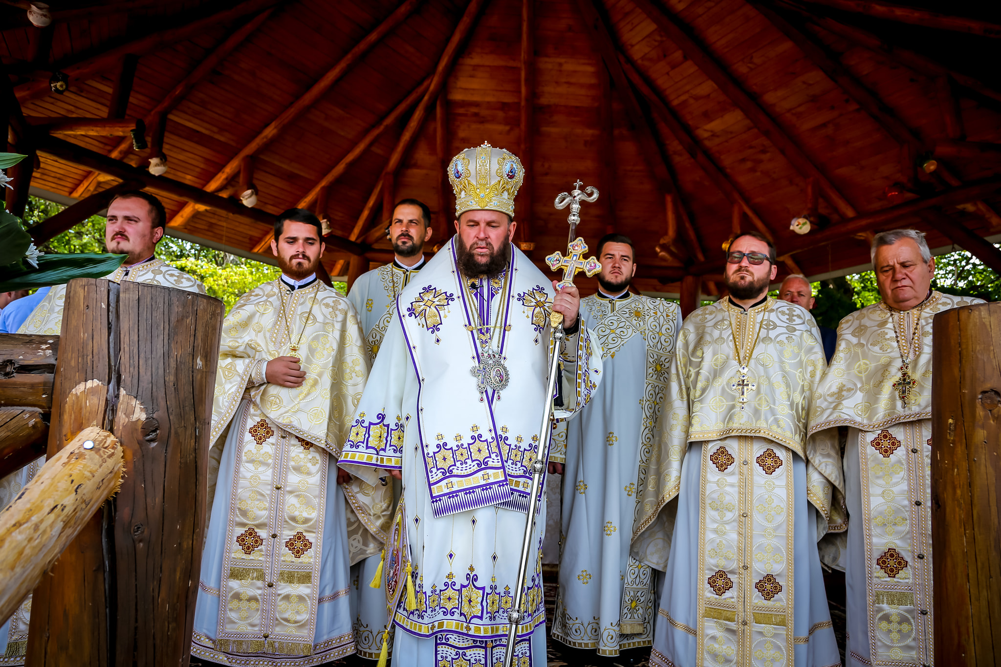 Sfânta Liturghie a fost săvârșită pe Altarul de vară al lăcașului monahal, așezat într-o frumoasă poiană, sfințirea locului de mănăstire fiind în luna aprilie a anului 2007, de către Preasfințitul Părinte Iustin.