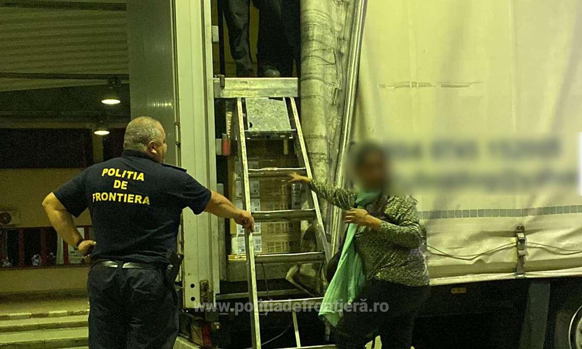 În cursul zilei de luni, 08 august a.c., polițiștii de frontieră din cadrul Serviciului Teritorial al Poliției de Frontieră Satu Mare au desfășurat o amplă misiune pe linia combaterii migrației ilegale. Acțiunea s-a finalizat în cursul serii trecute, în jurul orei 23.00, când în Punctul de Trecere a Frontierei Petea s-au prezentat pentru efectuarea formalităţilor de frontieră pe sensul de ieşire din ţară doi cetăţeni români (unul de 52 de ani, iar celălalt în vârstă de 26 de ani) cu un automarfar înmatriculat în România. TIR-ul era încărcat – conform documentelor de însoțire a mărfii - cu produse electrocasnice care urmau să ajungă în Anglia.