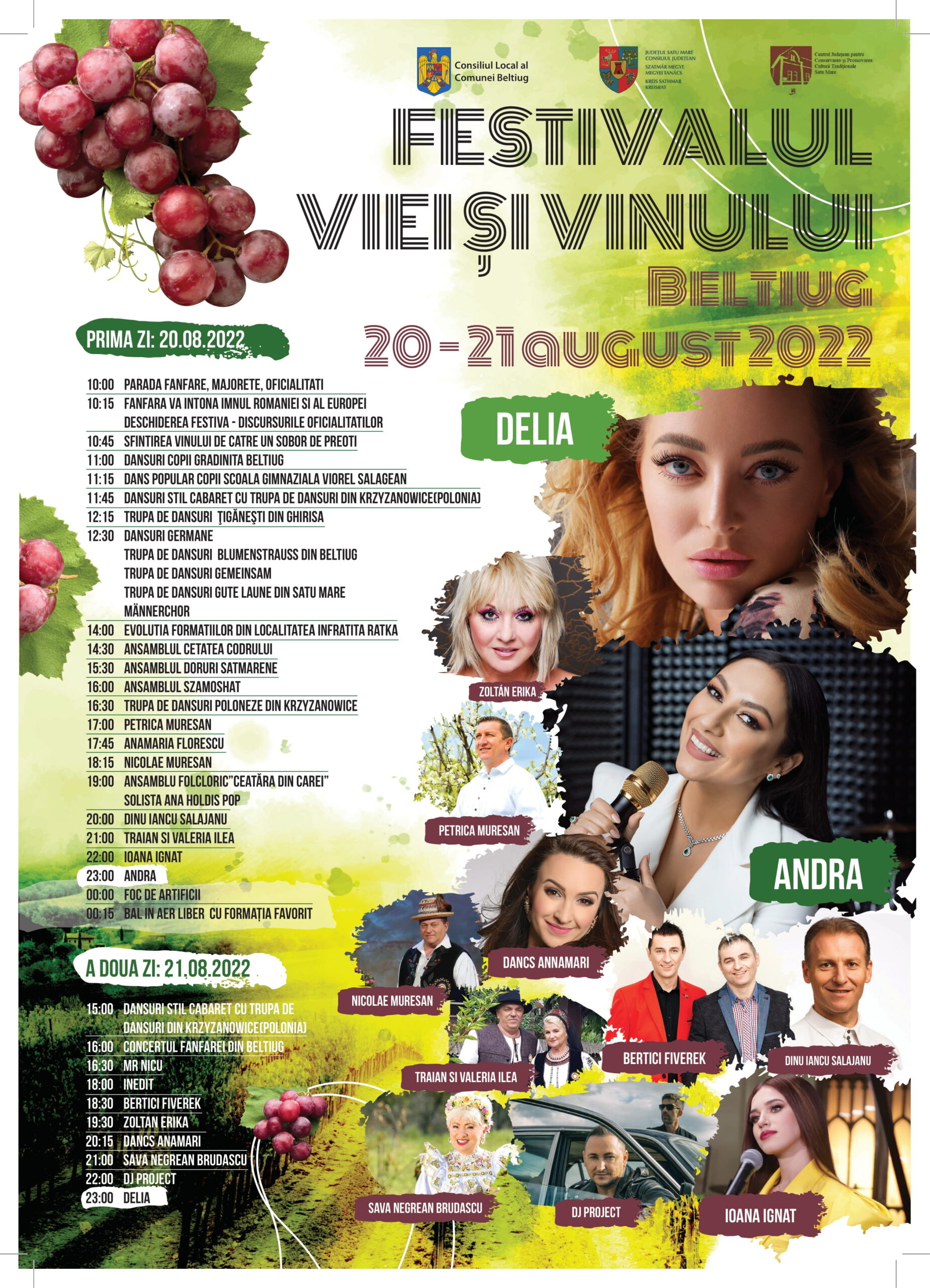 Toată lumea știe că Beltiugul este renumit de foarte mult timp pentru vinul de calitate, și nu numai. Așa că, în perioada 20-21 august se va desfășura Festivalul Viei și Vinului, un festival renumit pentru Comuna Beltiug, ajuns deja la a VIII-a ediție! Se anunță două zile pline în cadrul festivalului, cu artiști de seamă care vor aduce atmosfera la cel mai înalt nivel.