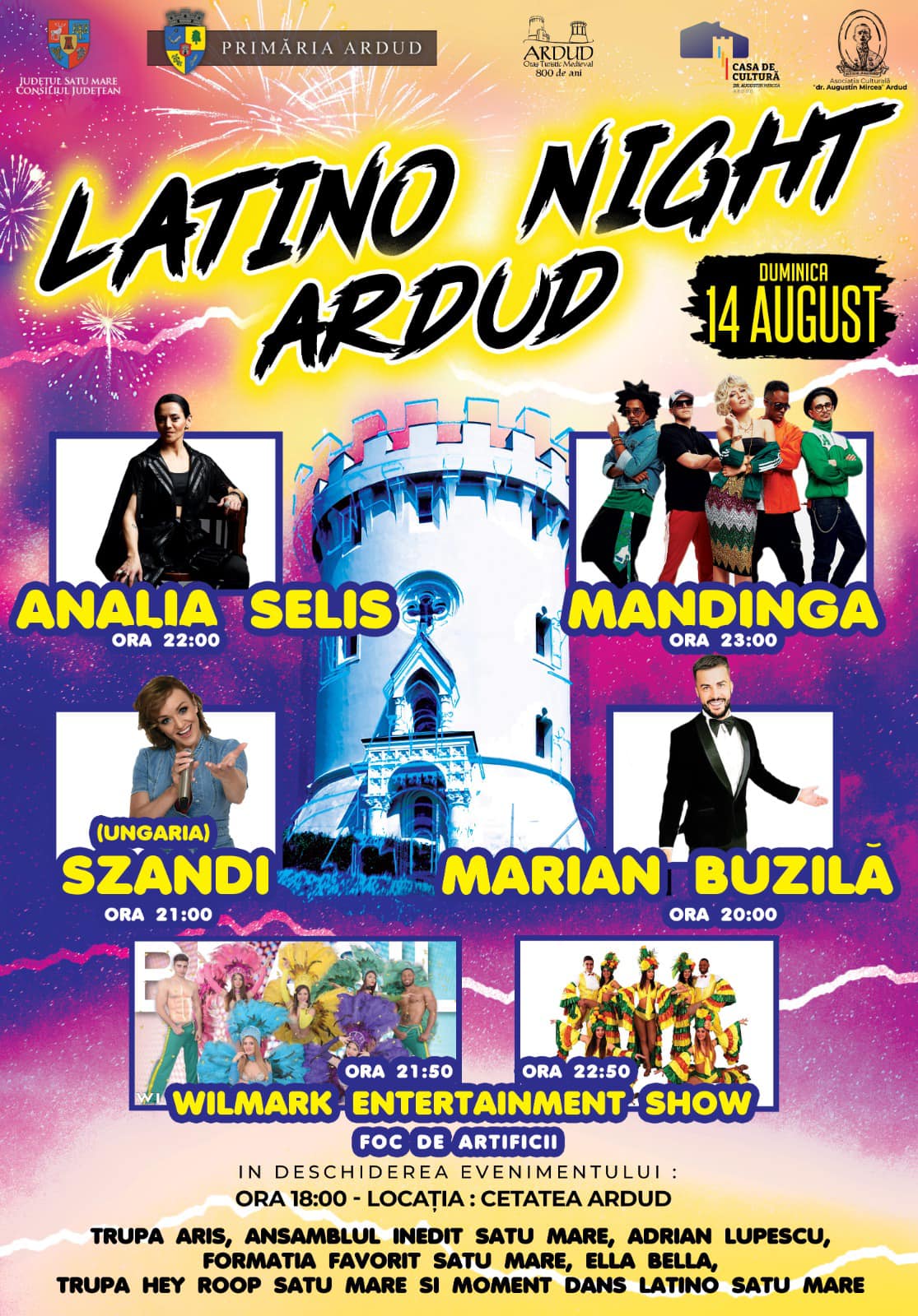 Vibrațiile antrenante vor fi transmise publicului sătmărean de către argentinianca Analia Selis, energica trupă Mandinga, exoticii dansatori de la Wilmark Entertaiment Show, de îndrăgita interpreta Szandi din Ungaria, dar și de către talentatul Marian Buzilă.