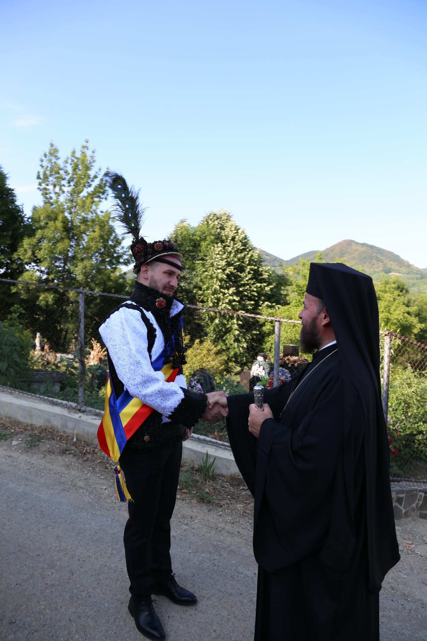 Întru întâmpinarea Preasfinției Sale a venit domnul Ionici Florin Dumitru, primarul comunei Cămărzana din județul Satu Mare, împreună cu mai mulți tineri și credincioși, ținând în mâine colacul tradițional pe un ștergar alb și sare, simboluri ale ospitalității.