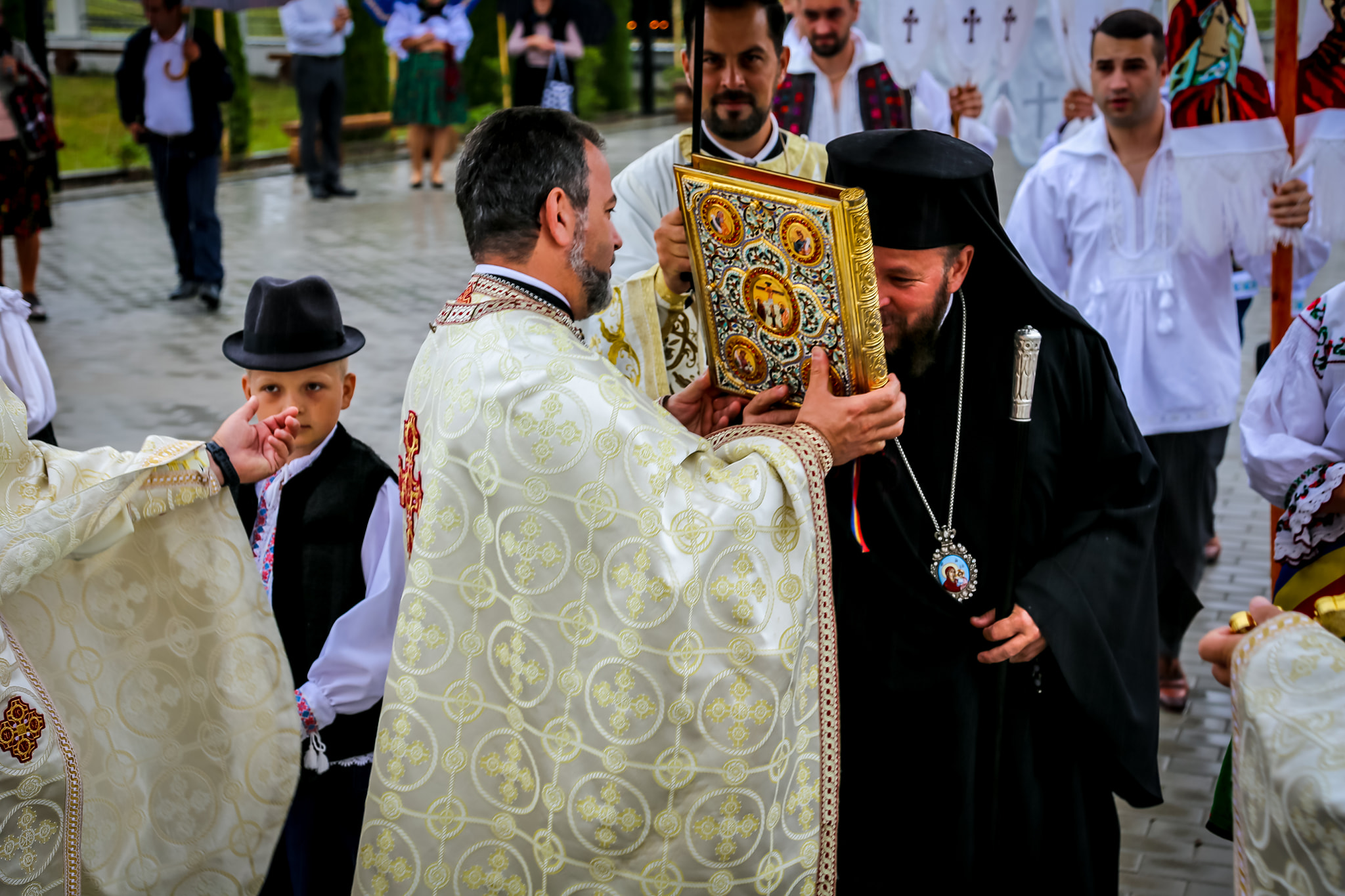 Întru întâmpinarea ierarhului au fost prezenți mai mulți coconi și tineri îmbrăcați în frumoasele straie tradiționale, purtând în mâini prapori și icoane. Amintim aici „Procesia” venită din localitatea Săcel, împreună cu părintele Dumitru Iuga, știindu-se faptul că părintele George este fiu al satului Săcel.