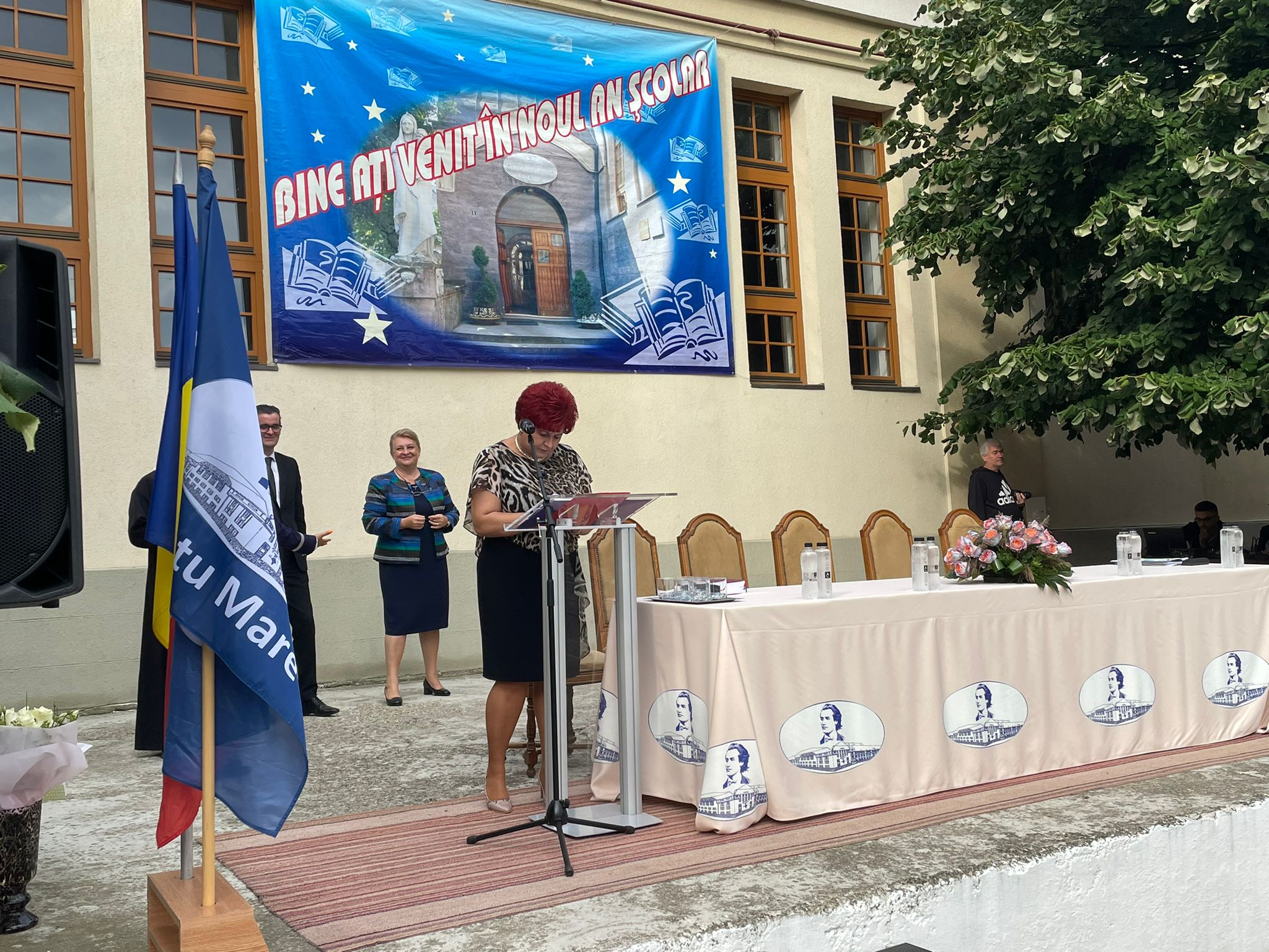 Începând cu ora 10, s-a desfășurat festivitatea de deschidere a anului școlar 2022-2023 în cadrul Colegiului Național "Mihai Eminescu" Satu Mare. Astfel, au fost prezenți pe podiumul în care an de an se desfășoară festivitățile didactice, Natalia Boloș - director; prof. Nicoleta Cherecheș - director adjunct; Anișoara Boitor - inspector școlar general; Adelin Ghiarfaș - viceprimar al județului Satu Mare; Liliana Chiorean - comisar al Inspectoratului Județean de Poliție Satu Mare; Anca Mateian - reprezentantul Asociaţiei de Părinţi și Radu Pop - părintele școlii.