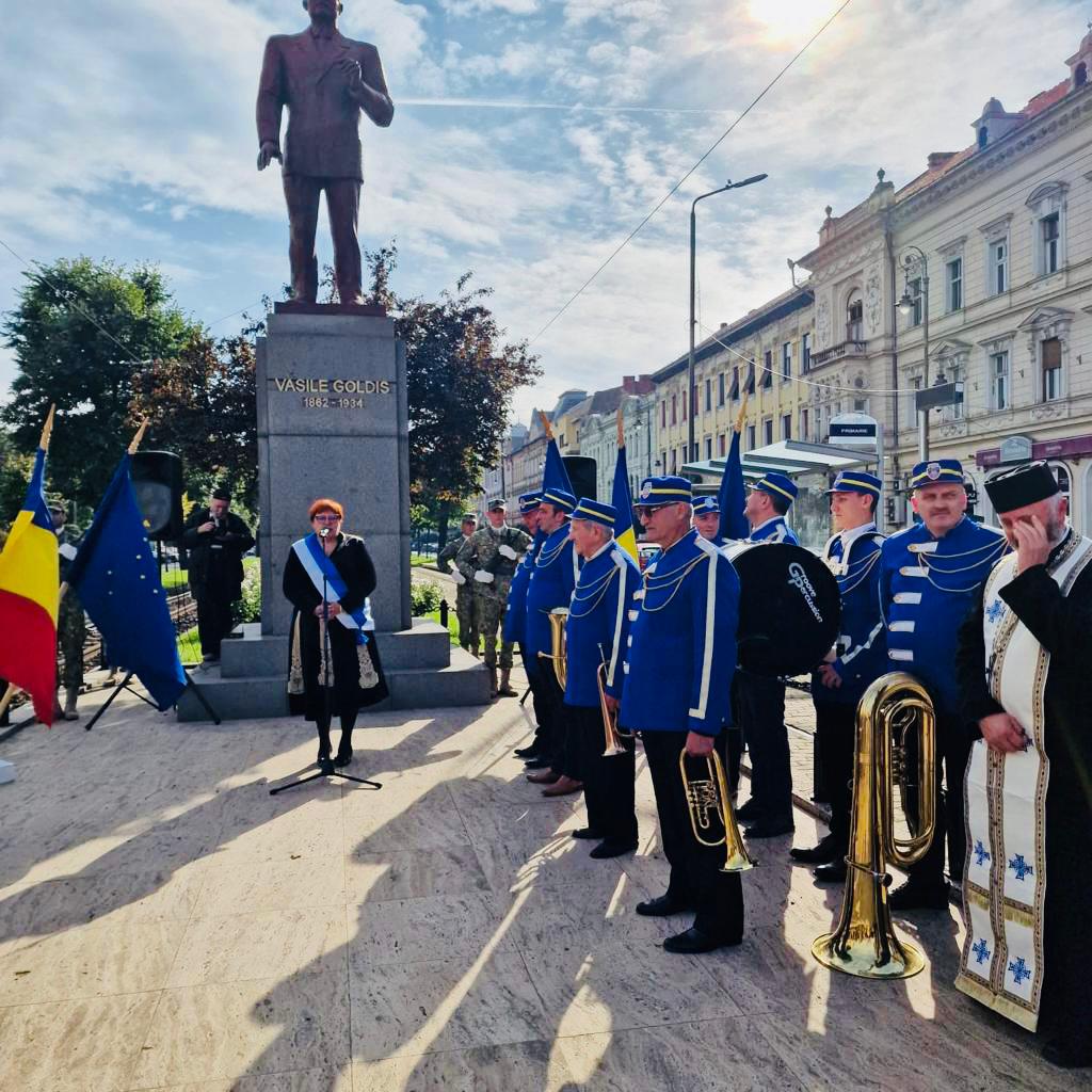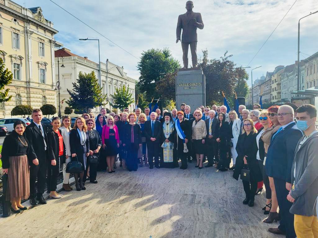 Ceremonia de deschidere a anului universitar a continuat la orele după-amiezii. Evenimentul, structurat pe două părți, a început cu Imnul de Stat al României și a continuat cu slujba religioasă, luări de cuvânt și depuneri de coroane la statuia marelui corifeu Vasile Goldiș.
