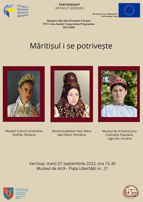 Un moment important în cadrul conferinței va fi vernisajul expoziției „Măritișul i se potrivește”, care va avea loc marți 27 septembrie, ora 15.30 la sediul Secției de Artă a Muzeului Județean Satu Mare. Expoziția va introduce vizitatorii în cultura și istoria locală a celor trei parteneri și a regiunilor pe care ei le reprezintă.