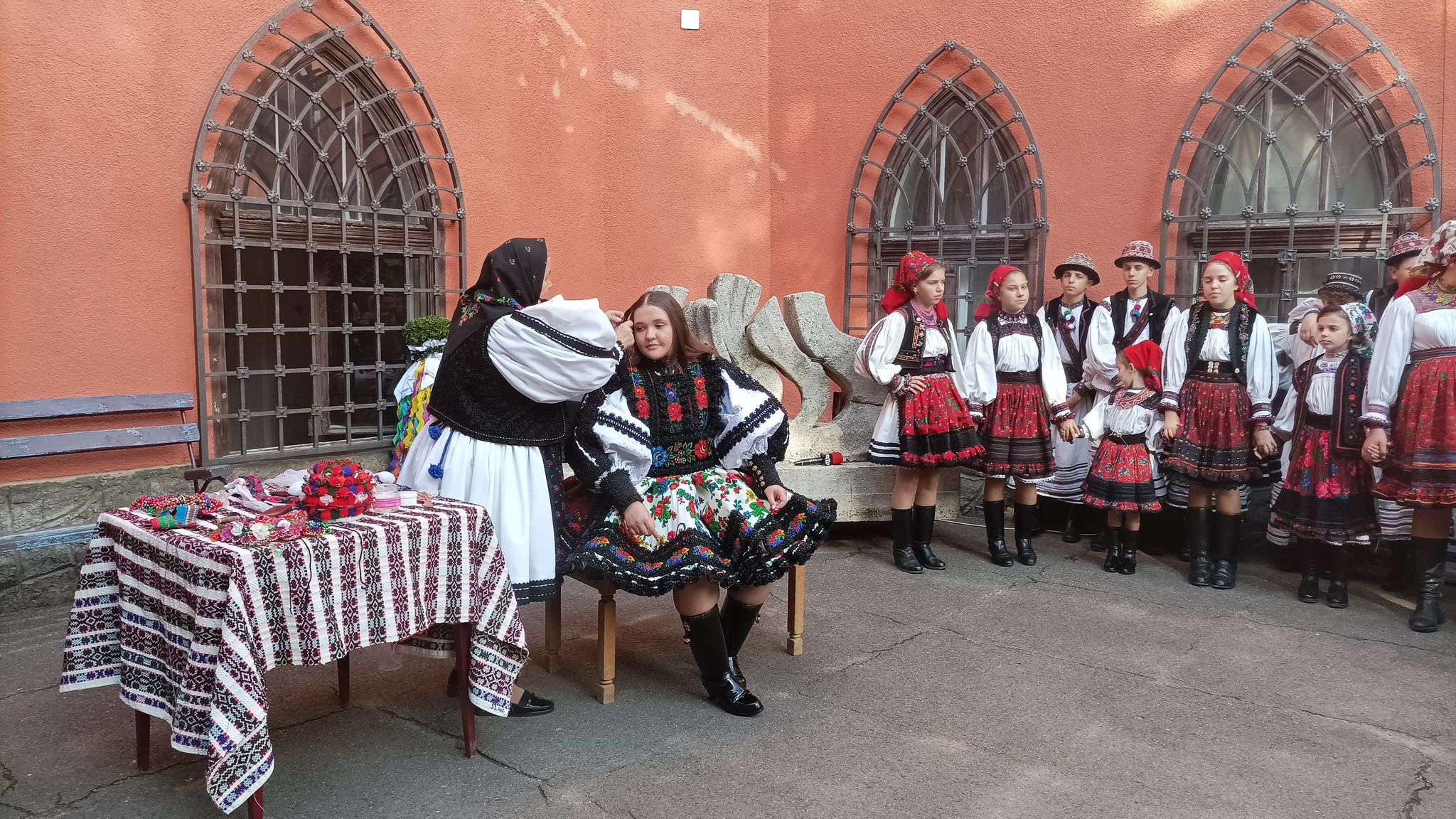 Pe lângă minunata expoziție, oaspeții venisajului s-au putut bucura și de o demonstrație a pregătirii miresei oșenești, moment acompaniat muzical de Bianca Cionca.