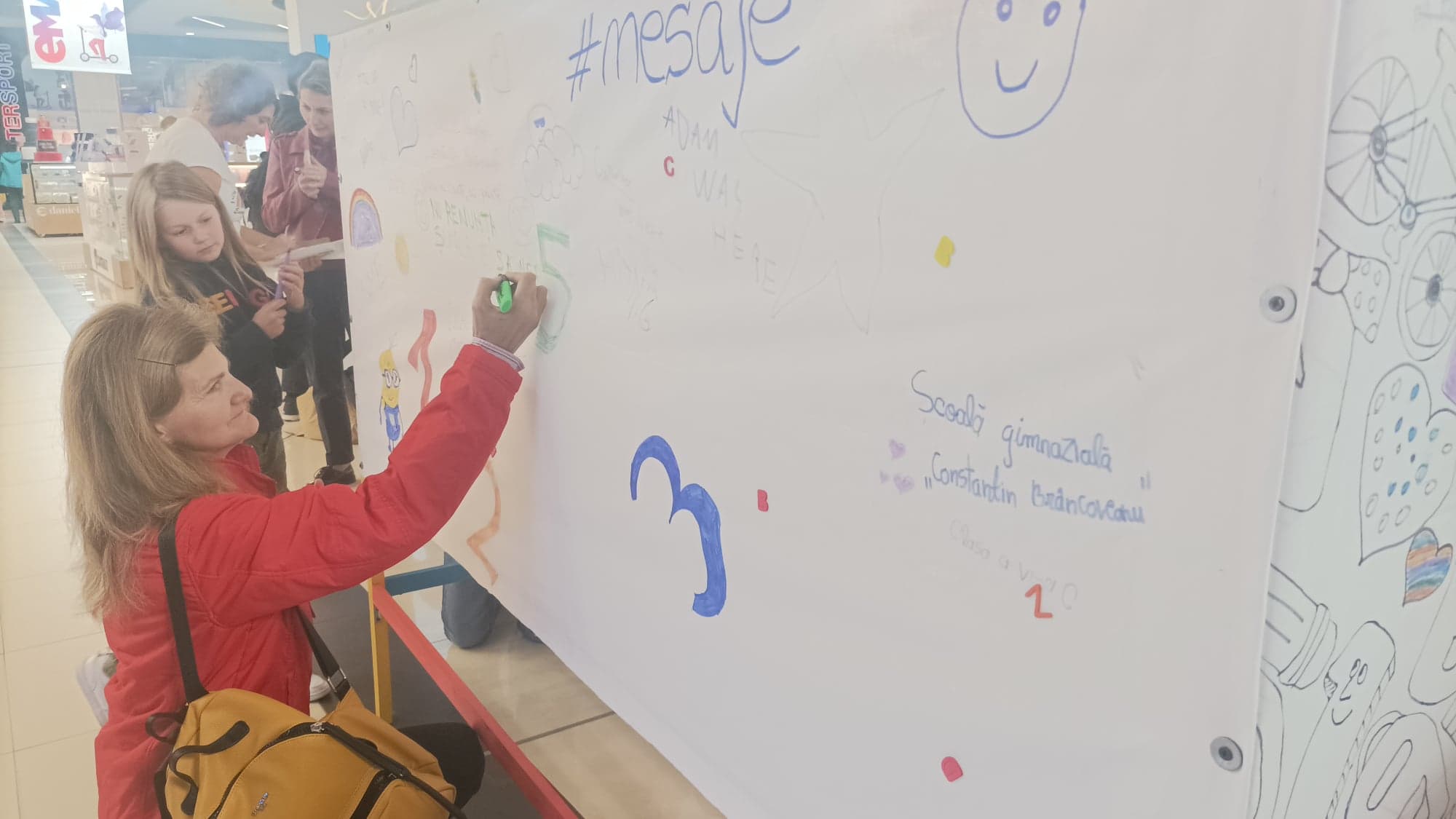 Micuţii elevi au colorat pe o planşetă şi alături de fiecare reprezentat al şcolilor au lăsat câte un mesaj de încurajare copiilor care se află în pragul abandonului şcolar, explicându-le de ce nu trebuie sa renunţe la şcoală.