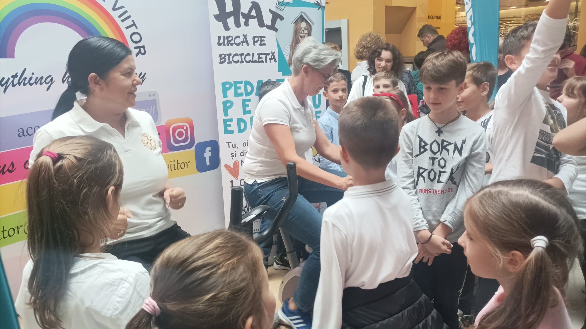 Primele persoane care au pedalat au fost Sânziana Cristea, director CJRAE Satu Mare, alături de Inspectorul Școalar General Satu Mare, Anișoara Boitor. Apoi au pedalat sponsorul principal al campaniei, Clubul Rotary Satu Mare, reprezentat de Marcela Papici și membrul și reprezentantul clubului Achim Natalia. Mai apoi cu continuat Inspectoratul de Poliție Județean Satu Mare și Shopping City Satu Mare alături de Felicia Crihorișan și Sabin Bonea. Urmatoarele nume care au pedalat sunt Ioana Balea, PR Specialist de la Zollner Electronic Satu Mare și Otilia Matioc, apoi sponsorii Polipol din Foeni, iar mai apoi Diana Zazula și Vlad Mureșan de la Teatrul de Nord Satu Mare