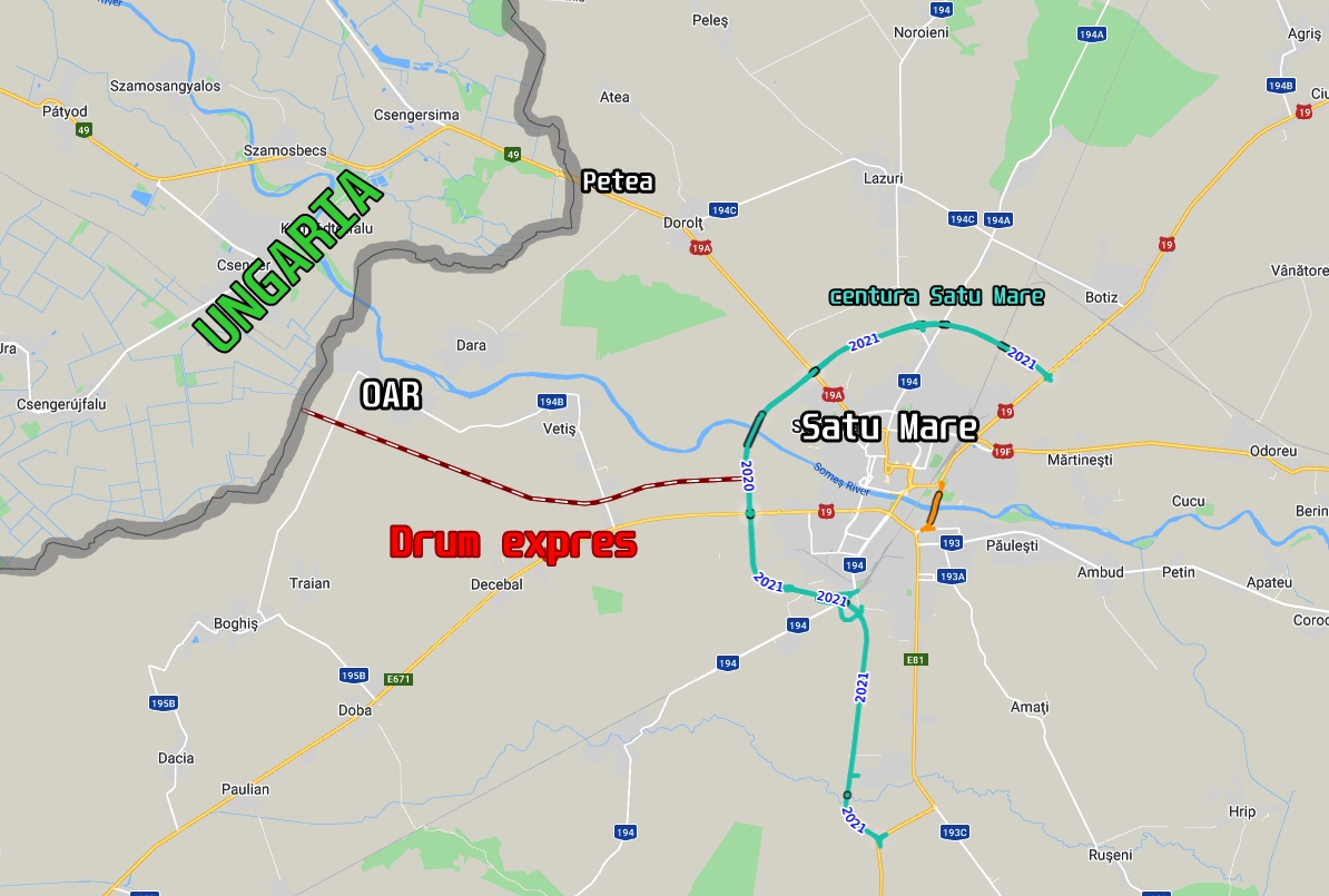 Județul și municipiul Satu Mare va fi legat, în cele din urmă, direct de aurtostrăzile Europei. Recent a fost finalizat studiul de fezabilitate pentru continuarea carosabilului centurii și urmează faza de licitație. Dacă lucrurile merg bine, în circa trei anid e zile va fi finalizată Drumul Rapid dintre Centura Sătmarului și Granița cu Ungaria în zona loalității Oar.