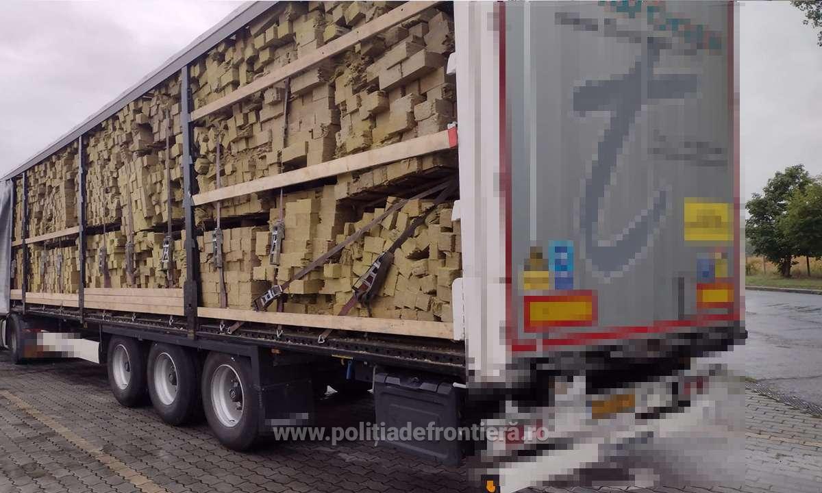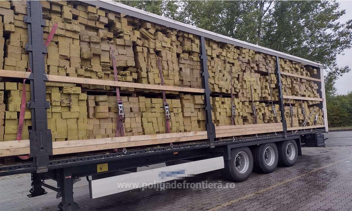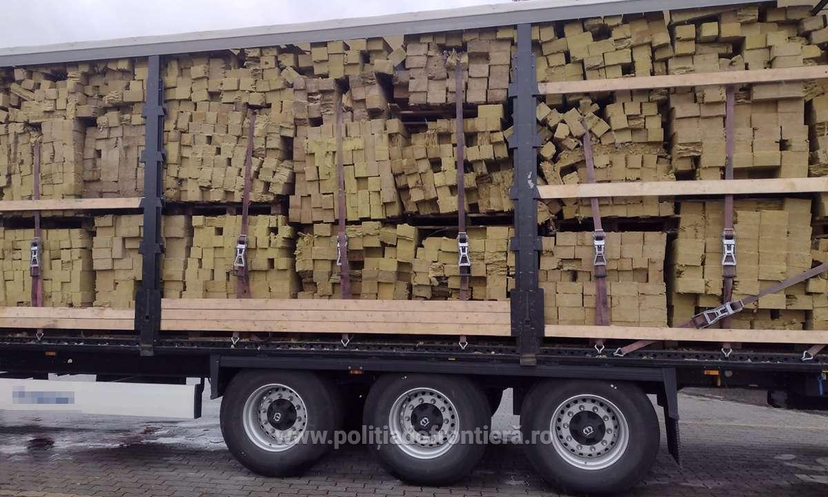 În cadrul verificărilor s-a constatat faptul că mijlocul de transport era încărcat cu 9.870 kg de fibră izolatoare aflată într-o stare avansată de degradare.