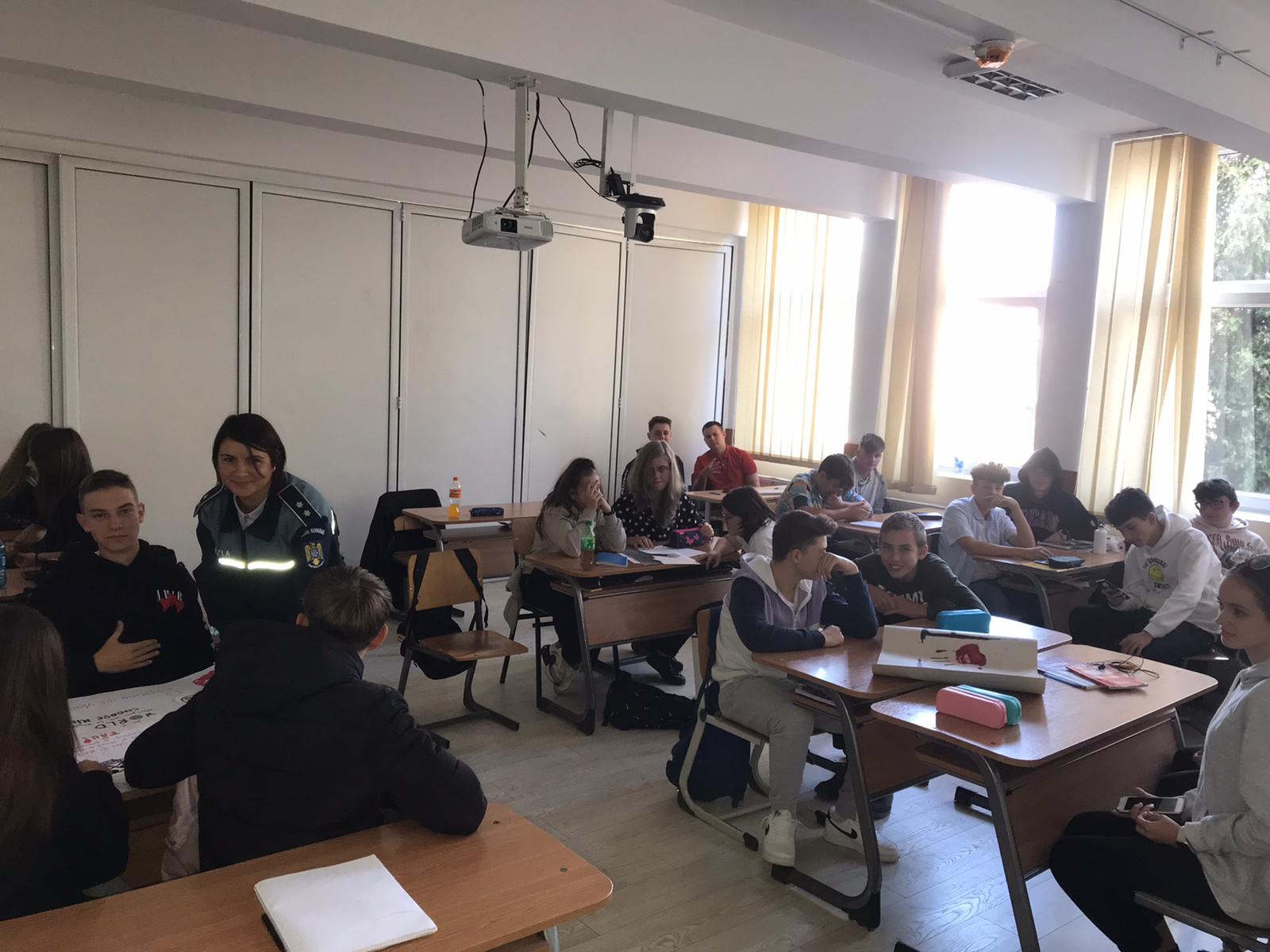 Într-o atmosferă nonformală, polițiști, elevi, cadre didactice au tras un semnal de alarmă cu privire la fenomenul care capătă tot mai multă atenție și este perceput ca o normalitate de majoritatea tinerilor – VIOLENȚA ÎN MEDIUL ȘCOLAR, domeniu strâns legat de delincvența juvenilă, de infracționalitate și răspundere penală.