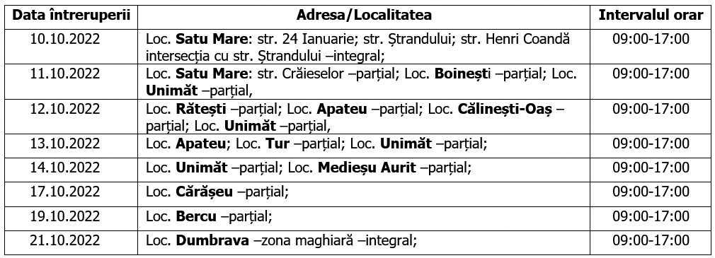 Ne cerem scuze pentru neplăcerile cauzate de aceste întreruperi, care sunt însă necesare pentru asigurarea unei bune funcţionări a instalaţiilor.