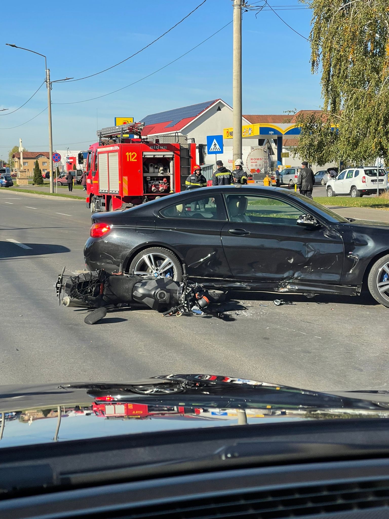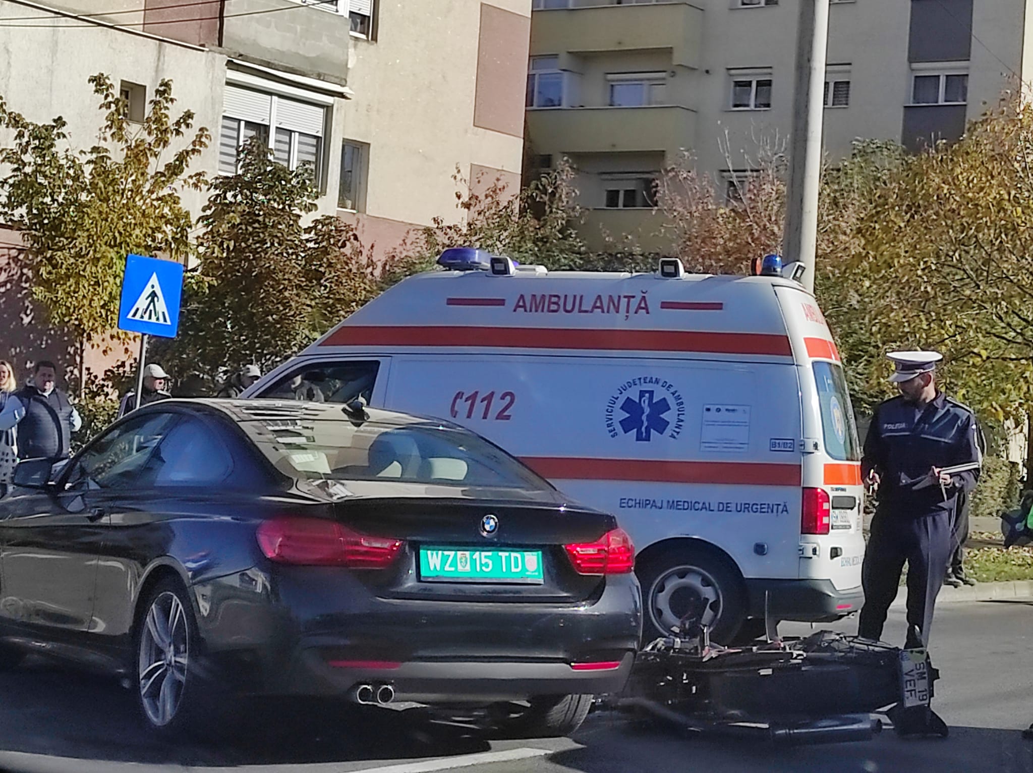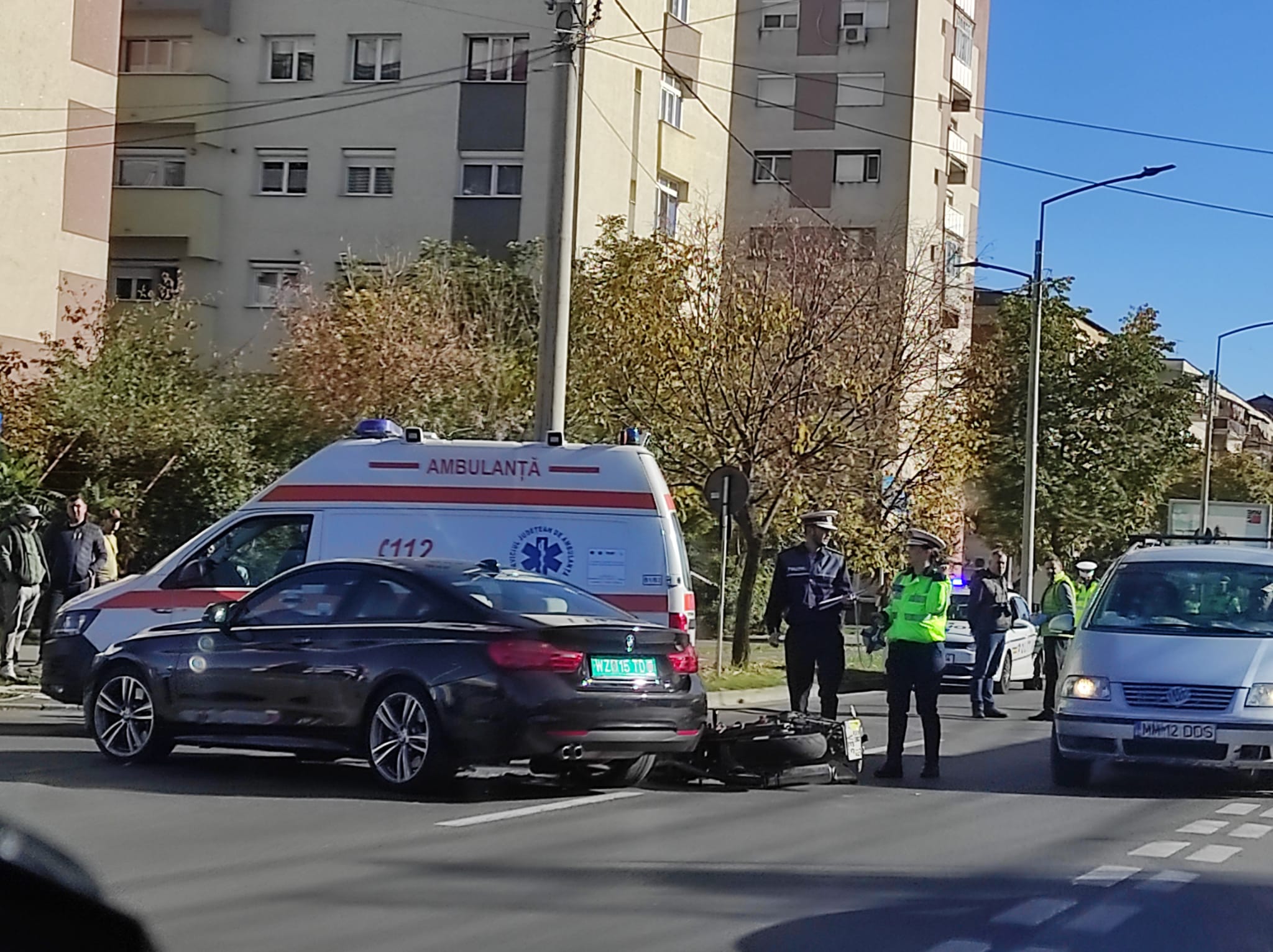 Din primele informații, neplăcutul eveniment s-a produs între un autoturism marca BMW și o motocicletă, șoferul mașinii a vrut să intre în cartier, neacordându-i prioritate motociclistului.