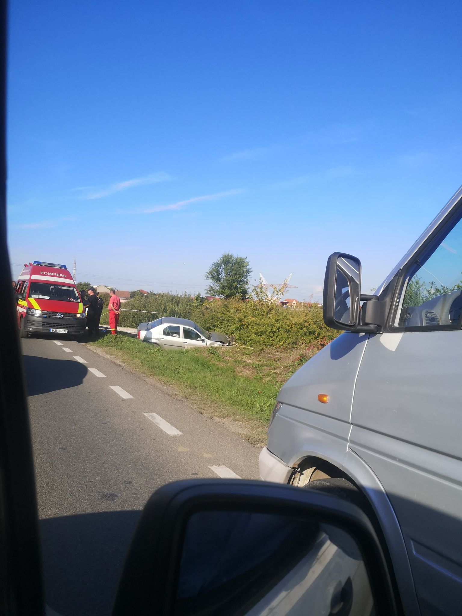 Conducătorul unei mașini marca Dacia Logan, a scăpat controlul volanului și a ajuns cu ea în șanțul de la marginea drumului.