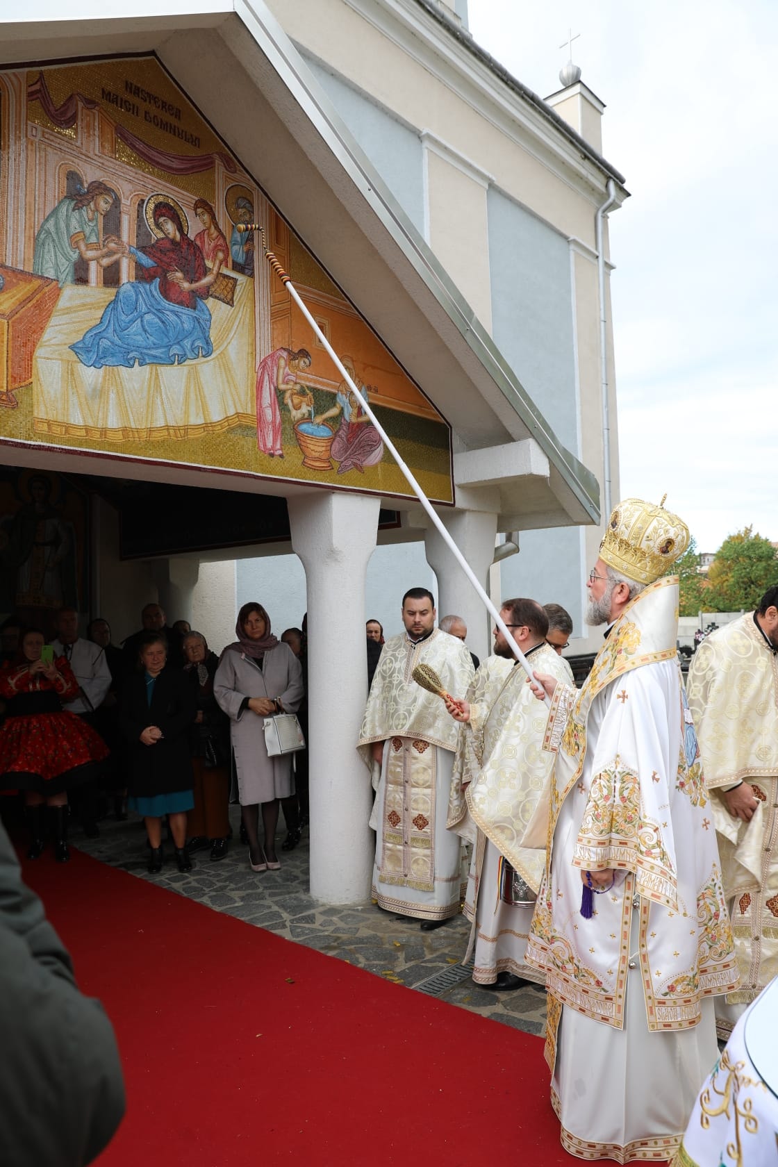 „Am revenit după 7 ani în oraşul Negreşti Oaş, mai exact la biserica istorică „Naşterea Maicii Domnului”, unde a păstorit vreme de peste 38 de ani Părintele protopop Mihai Feher, ctitorul catedralei noi din Negreşti Oaş, care a fost sfinţită de Patriarhul României, Preafericitul Daniel, la 1 iulie 2012. Acum, în această comunitate, păstoreşte părintele Adrian Bucşa, de doi ani, din 2020. Oraşul Negreşti Oaş are trei parohii, un număr mare de credincioşi, această parohie are 2.300 de suflete. În ultima vreme s-au făcut lucrări de înnoire: s-a schimbat parchetul şi s-a padimentat cu granit, s-a introdus încălzirea centrală, s-a aşezat o frumoasă icoană în mozaic, la intrare, pe frontispiciu, cu Naşterea Maicii Domnului, care este ocrotitoarea bisericii, s-a zidit un lumânărar, un Altar de vară frumos, şi am venit să binecuvântăm lucrările. Pe viitor, pentru că biserica este monumente istoric de categoria B, au de gând să promoveze un proiect, să schimbe acoperişul şi să-l înnobileze, să-l facă mai durabil şi adecvat acestei biserici monumentale, care este biserica-mamă, biserica istorică a comunităţii.”